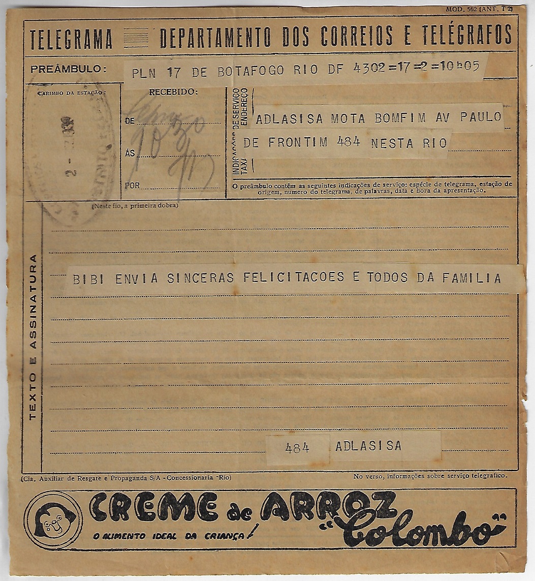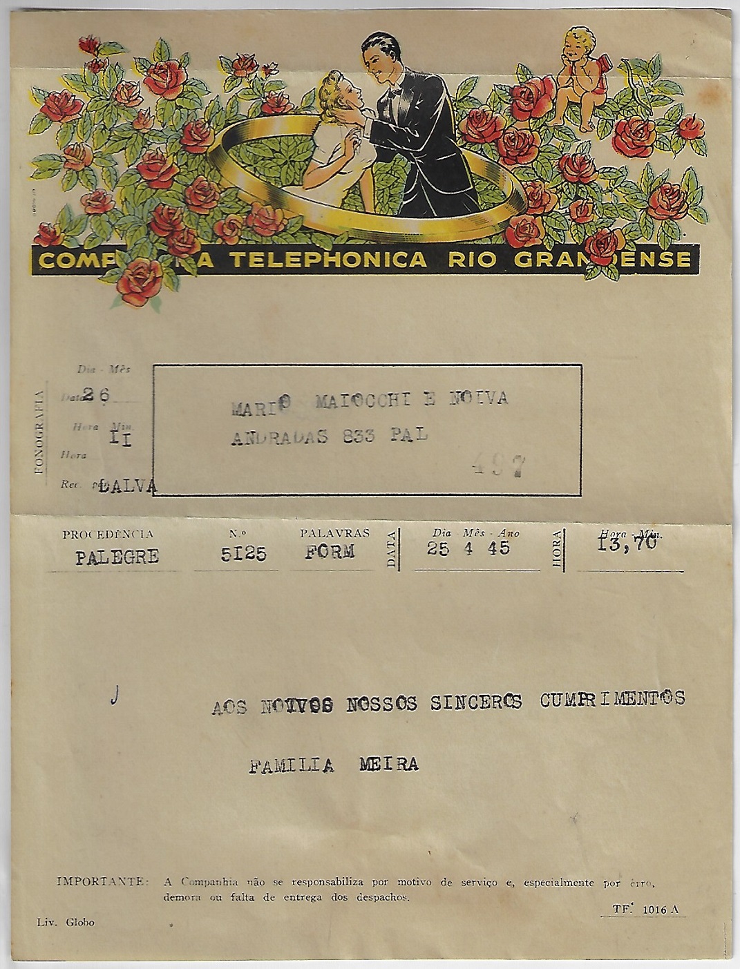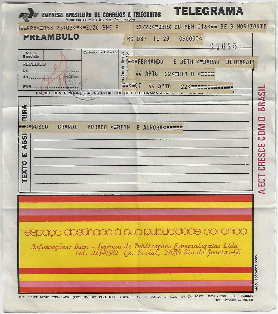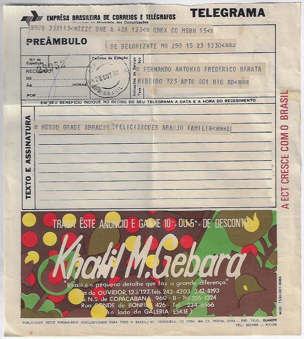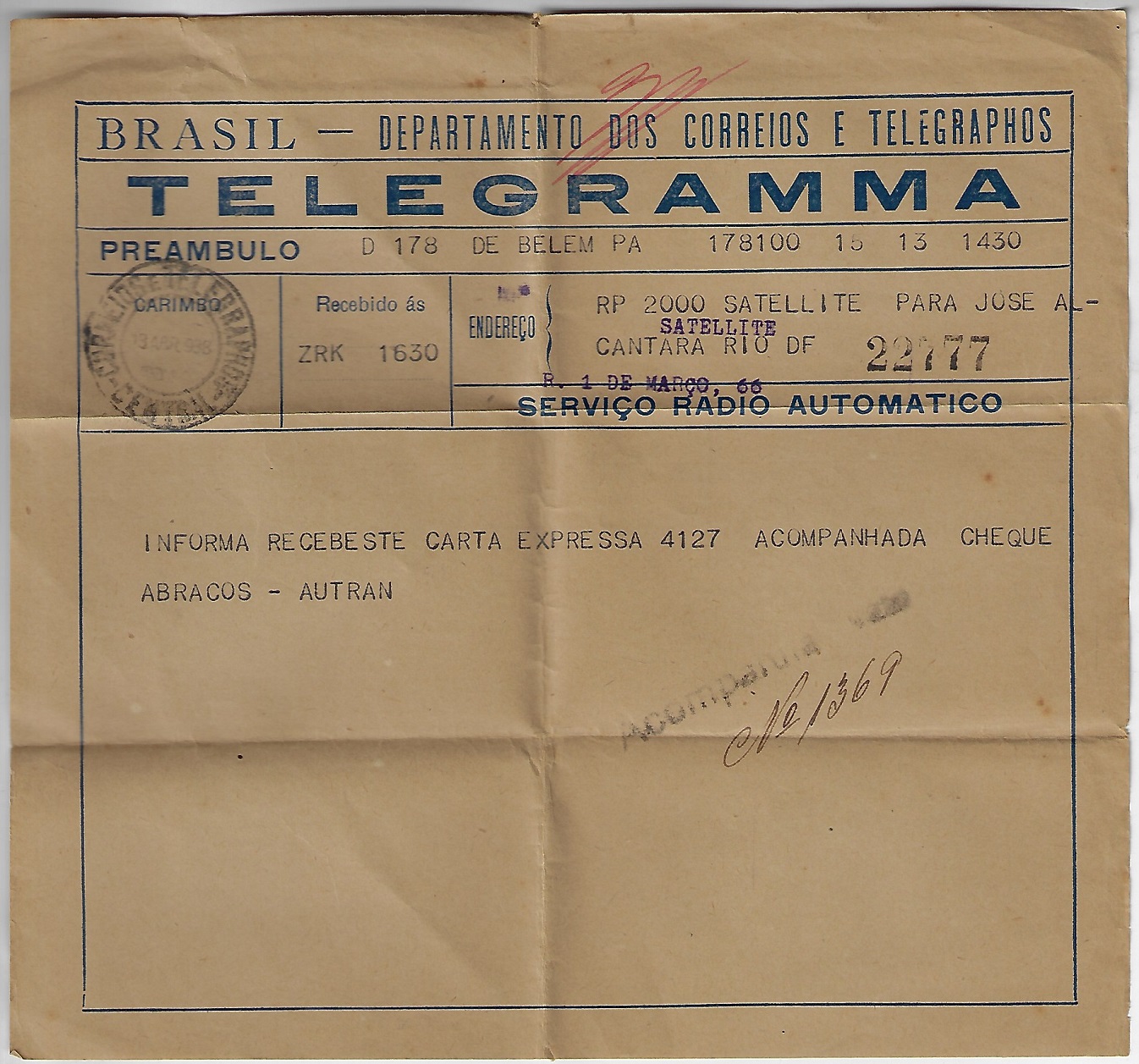 | 55357 | 1895, comprovante de telegrama expedido pela Repartição Geral dos Telégrafos do Rio de Janeiro (26/4) para Petrópolis | 30,00 | Foto |
