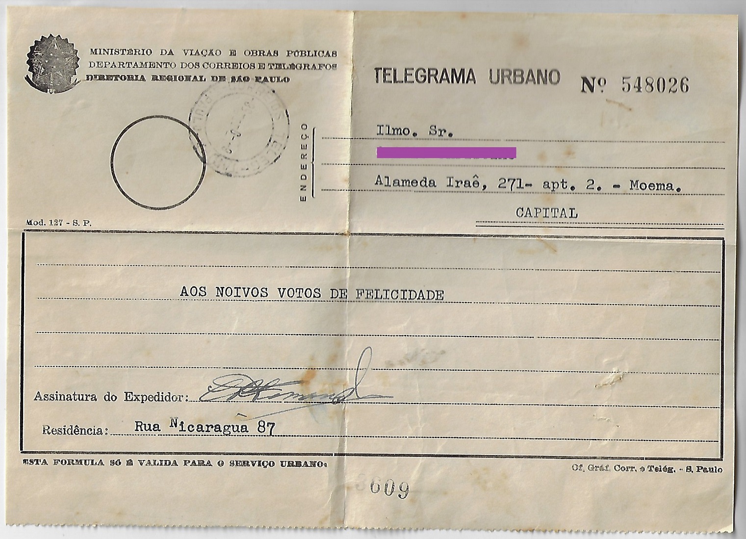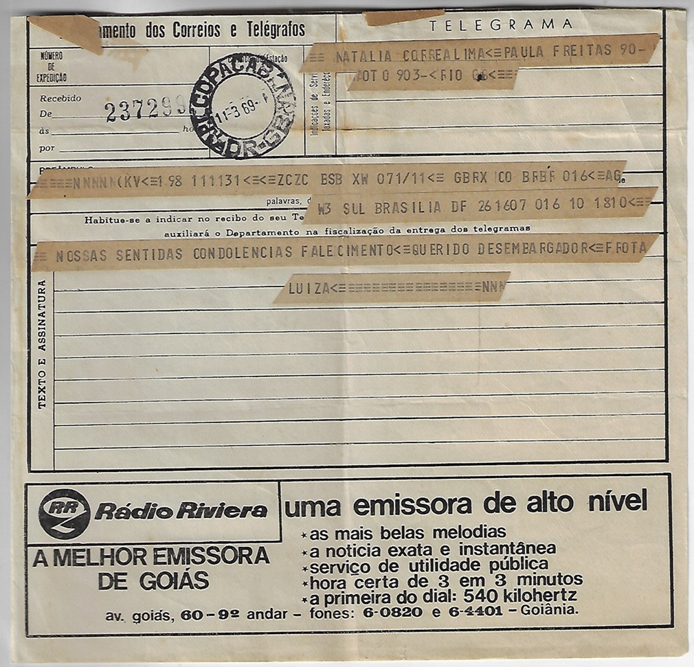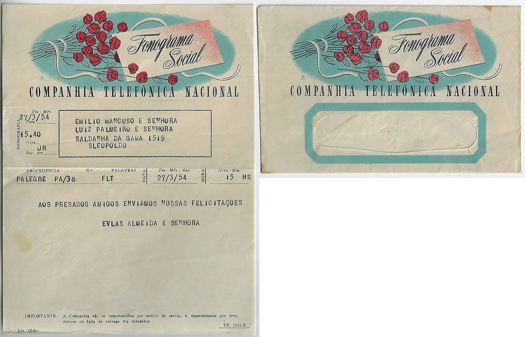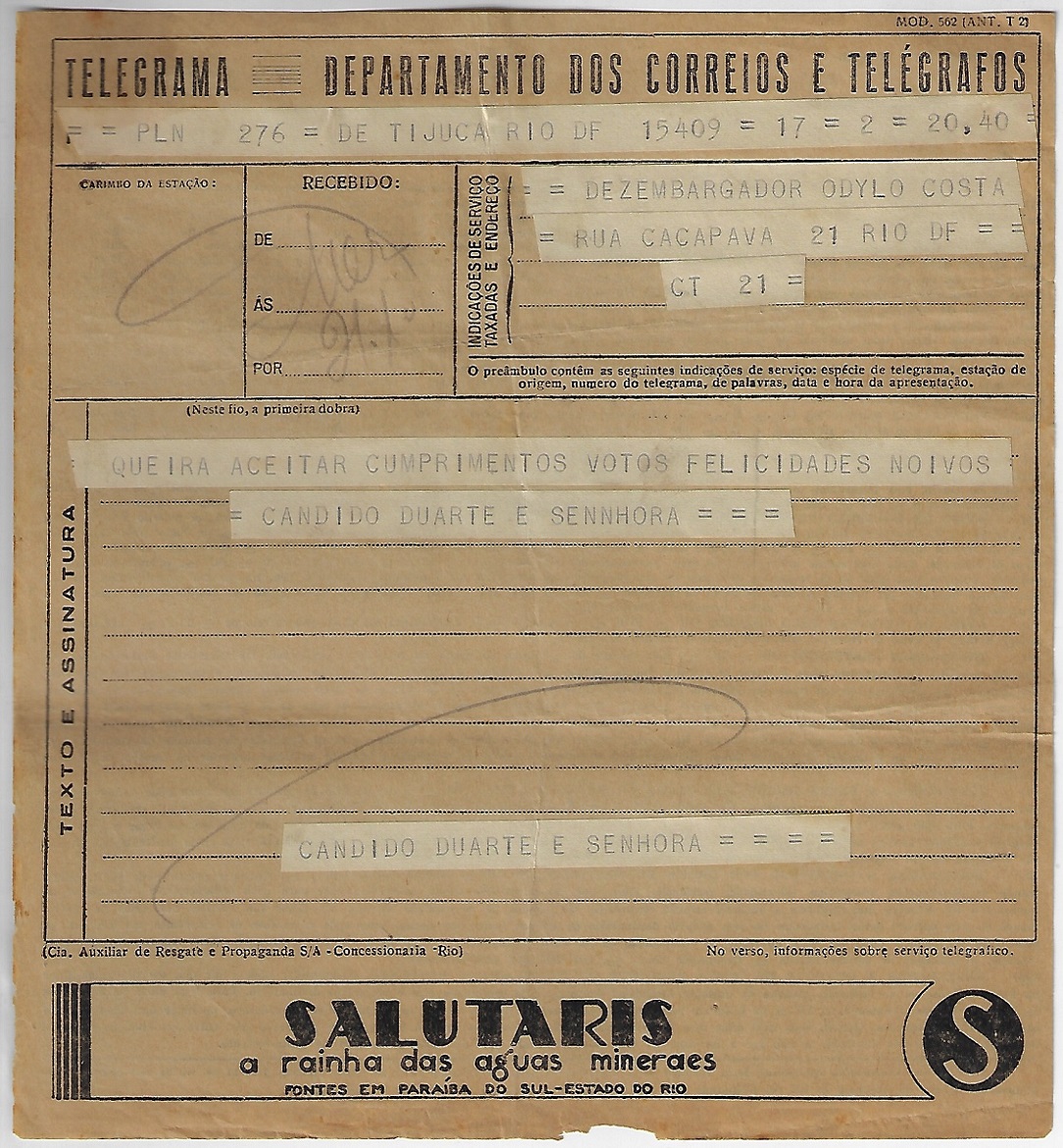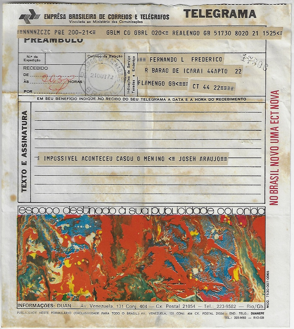 | 55357 | 1895, comprovante de telegrama expedido pela Repartição Geral dos Telégrafos do Rio de Janeiro (26/4) para Petrópolis | 30,00 | Foto |