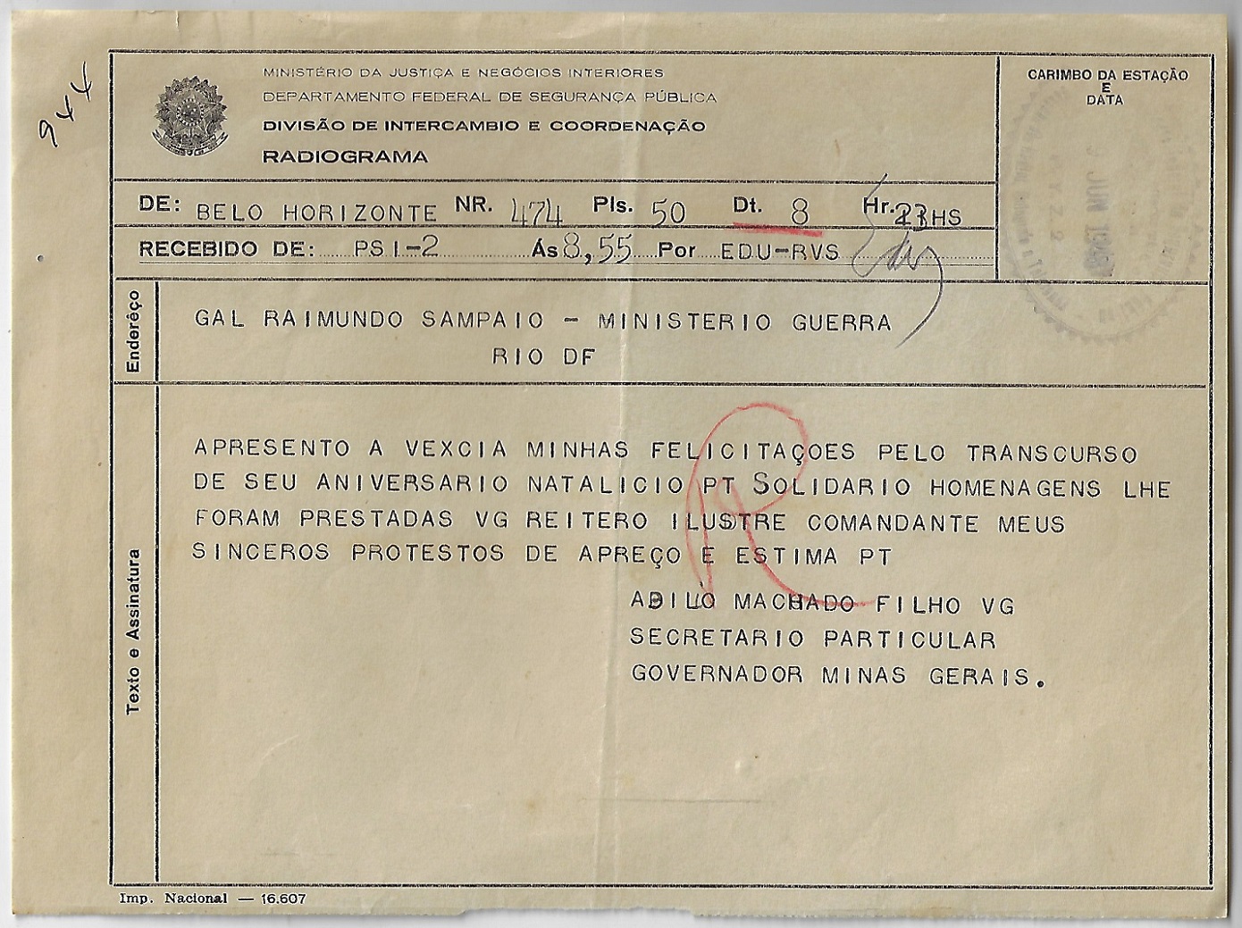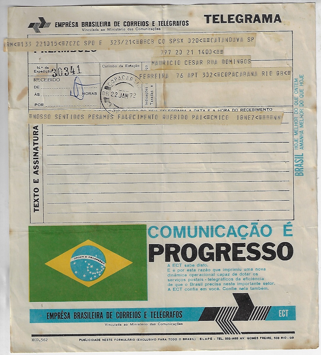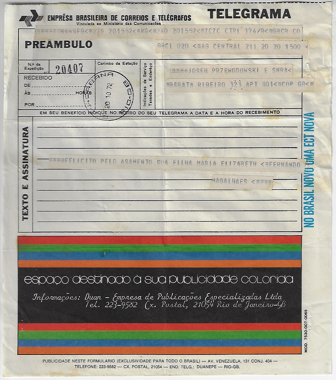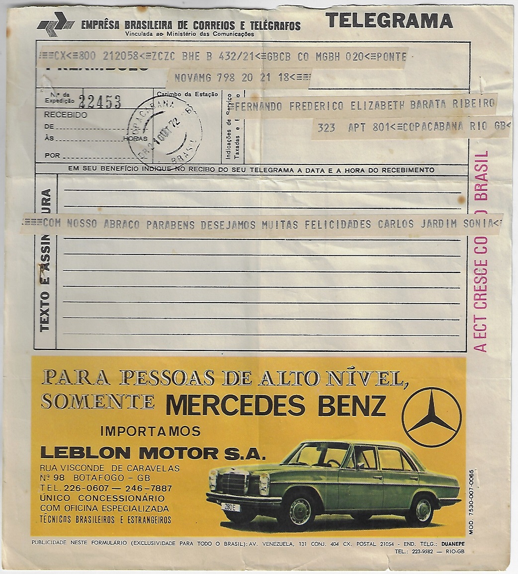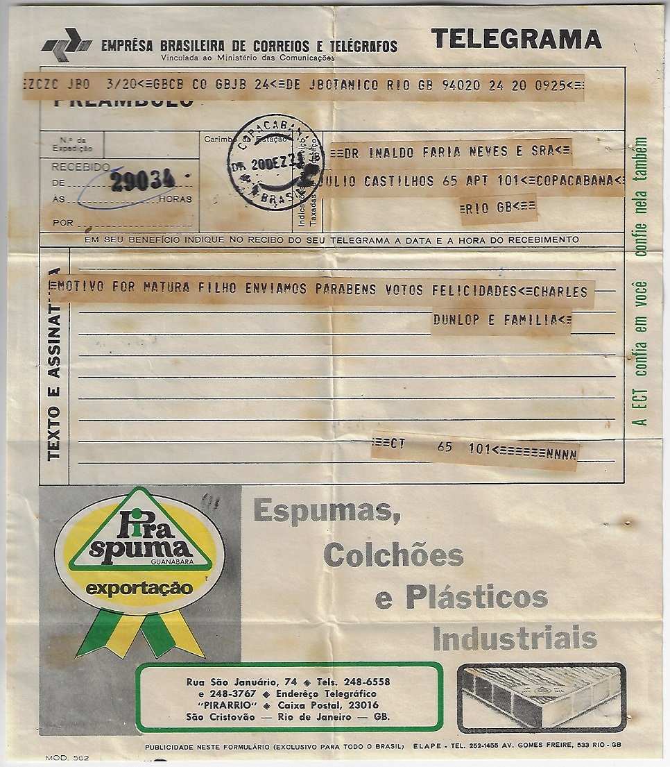 | 55357 | 1895, comprovante de telegrama expedido pela Repartição Geral dos Telégrafos do Rio de Janeiro (26/4) para Petrópolis | 30,00 | Foto |
