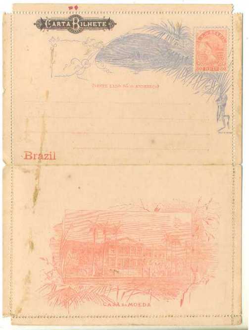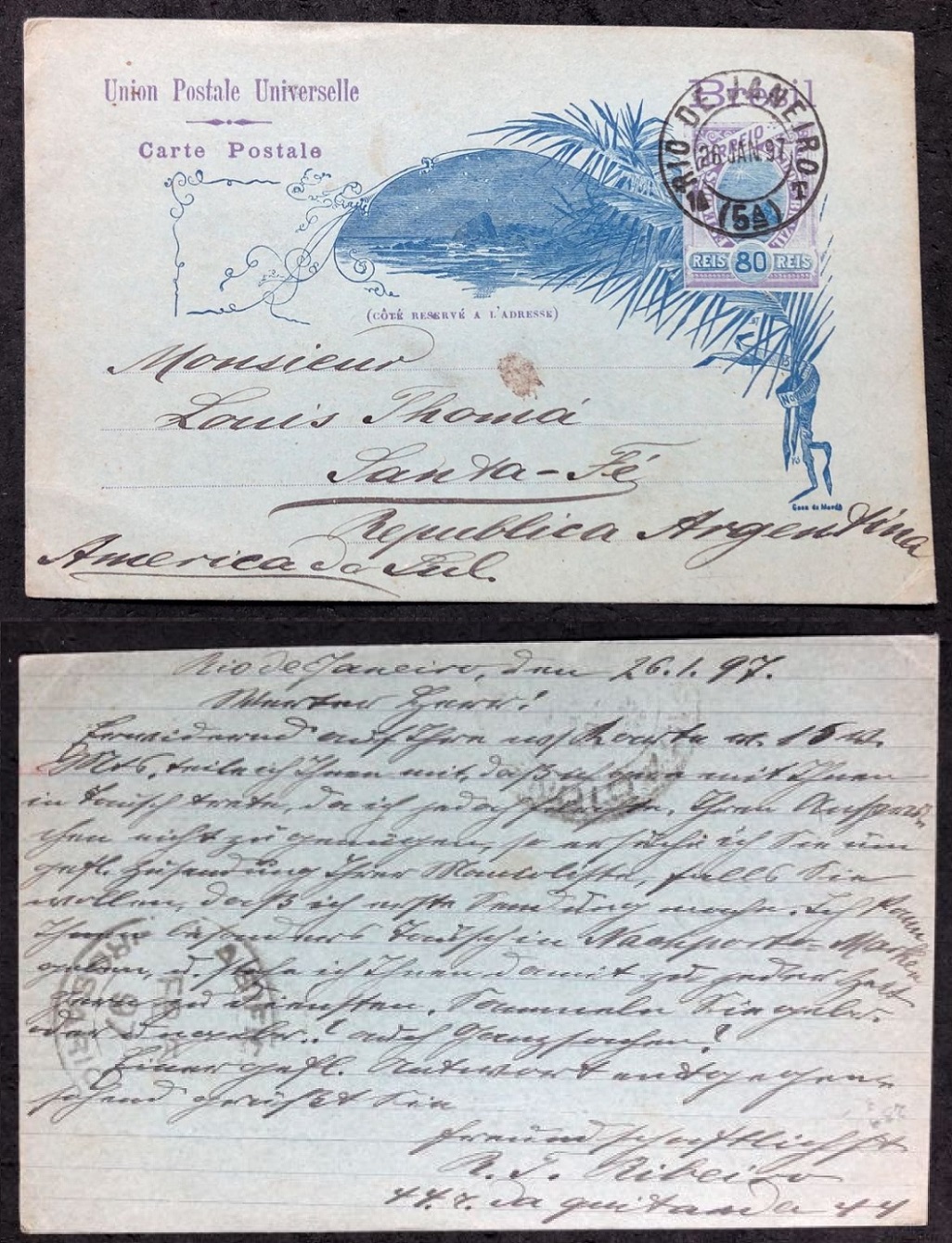 | 84881 | 1897, inteiro postal BP-48e enviado do Rio de Janeiro (26/1) para Santá Fé / Argentina (5/2) (catálogo 40 UF) | 40,00 | Foto |