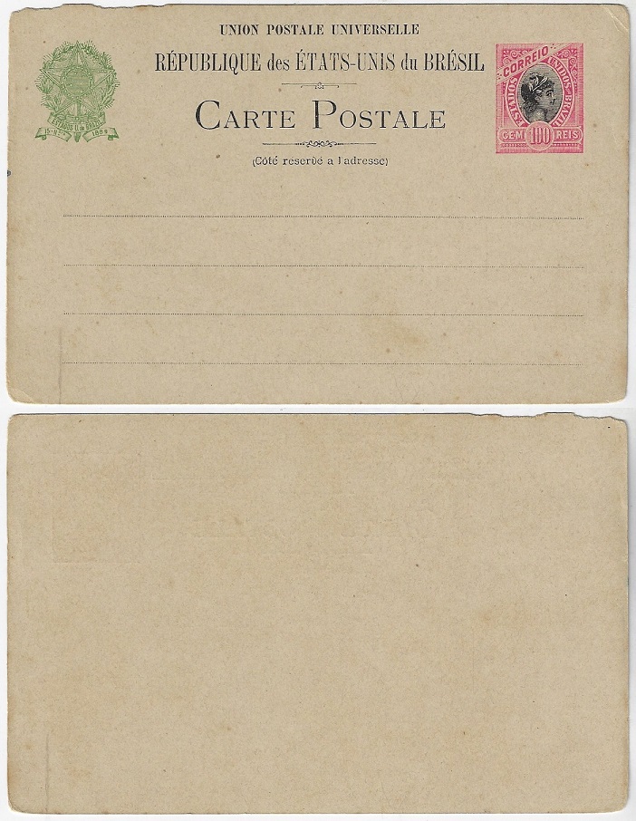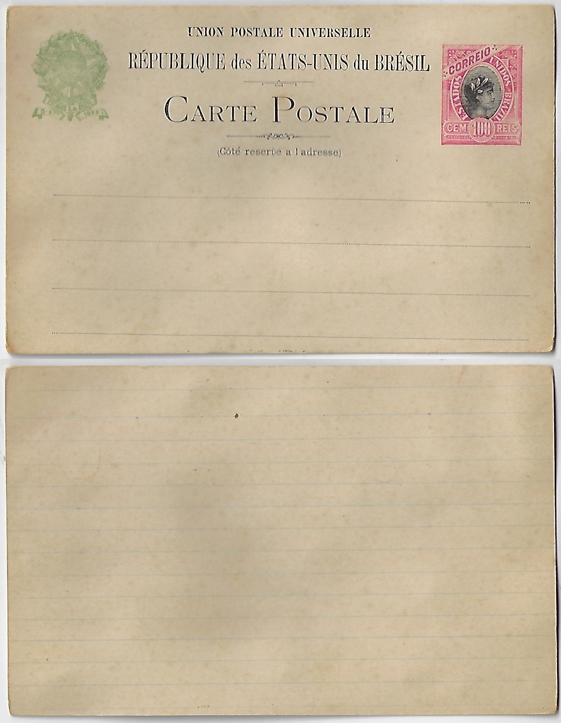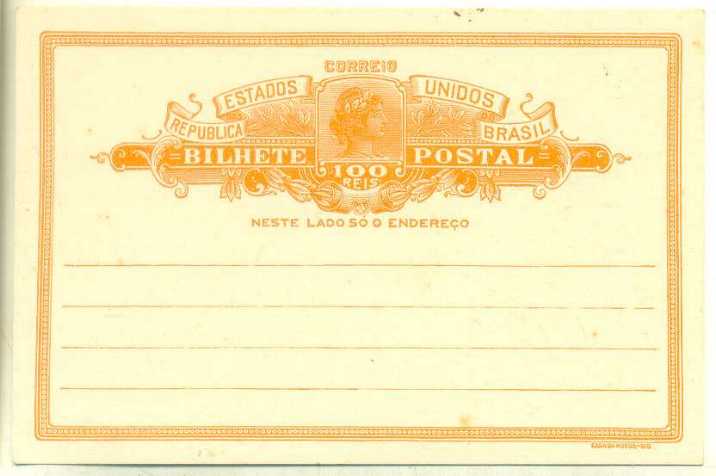 | 78529 | 1898, Inteiro Postal BP-57, Madrugada 100 Réis, espaçamento de 6 mm das linhas no verso, sem uso (22 UF) | 22,00 | Foto |