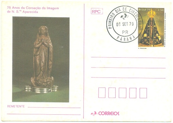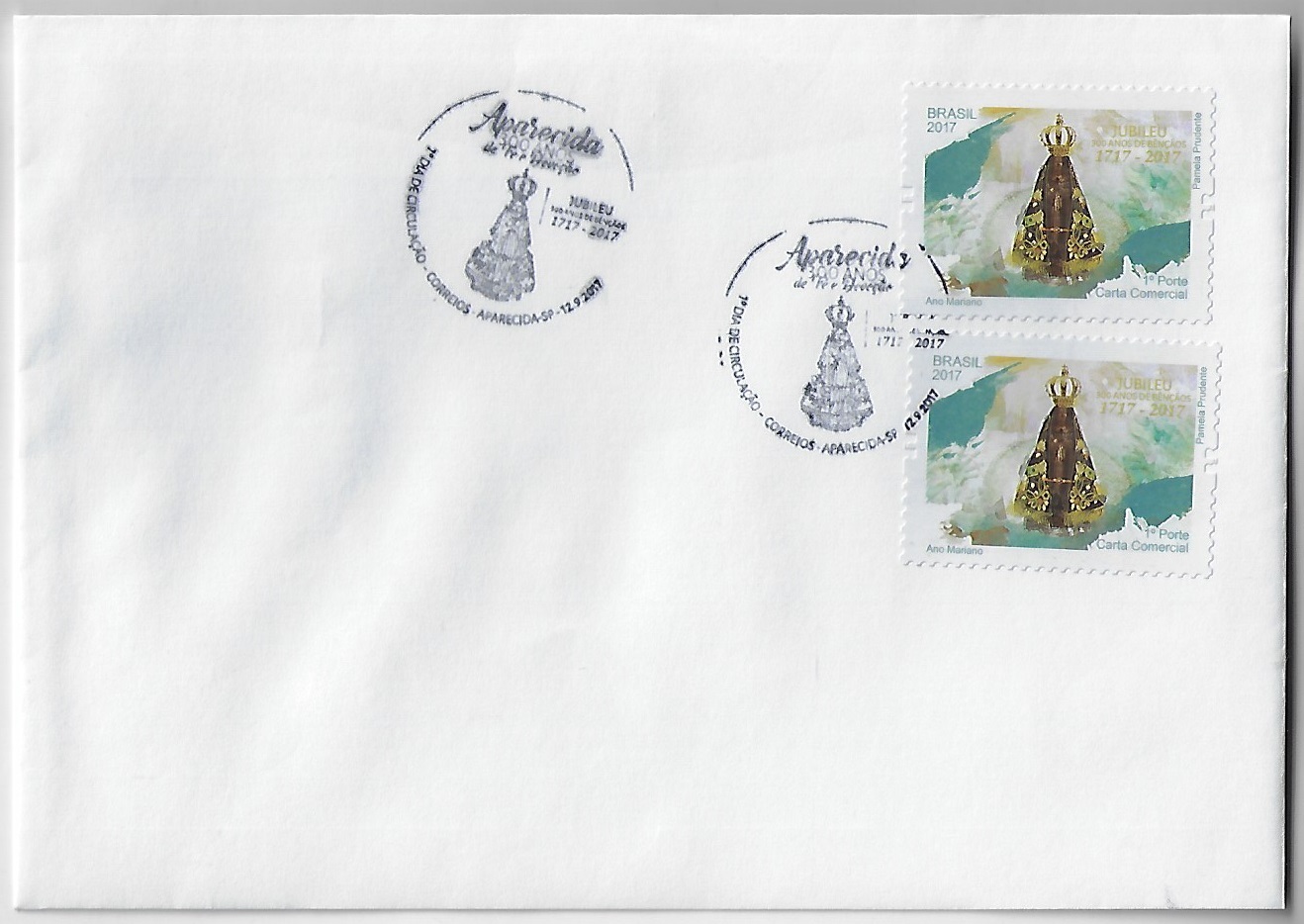| 69652 | 2017, envelope com 2 selos e carimbo comemorativos aos 300 Anos de Fé e Devoção a Nossa Senhora Aparecida, padroeira do Brasil | 10,00 | Foto |