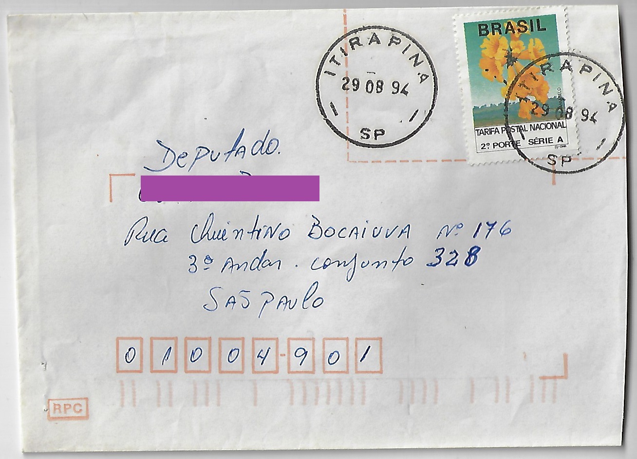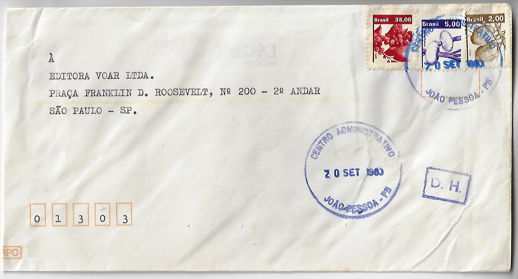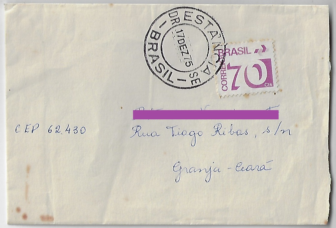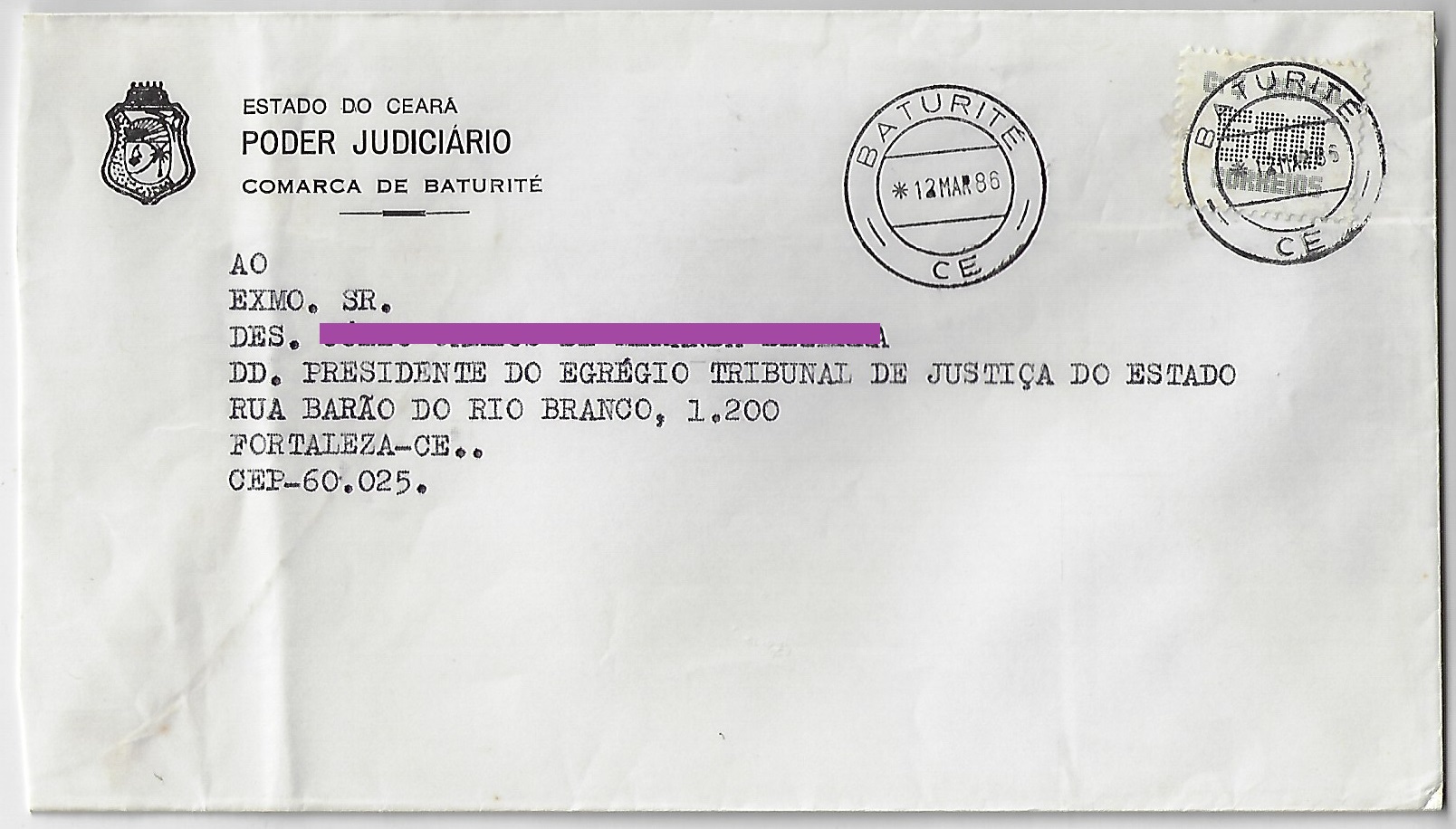 | 77738 | 2024, envelope registrado com etiqueta com código de barras enviado de Fortaleza, agência franqueada 13 de Maio, com DH = Depois da Hora | 10,00 | Foto |