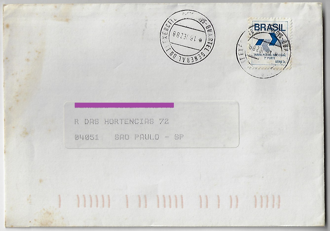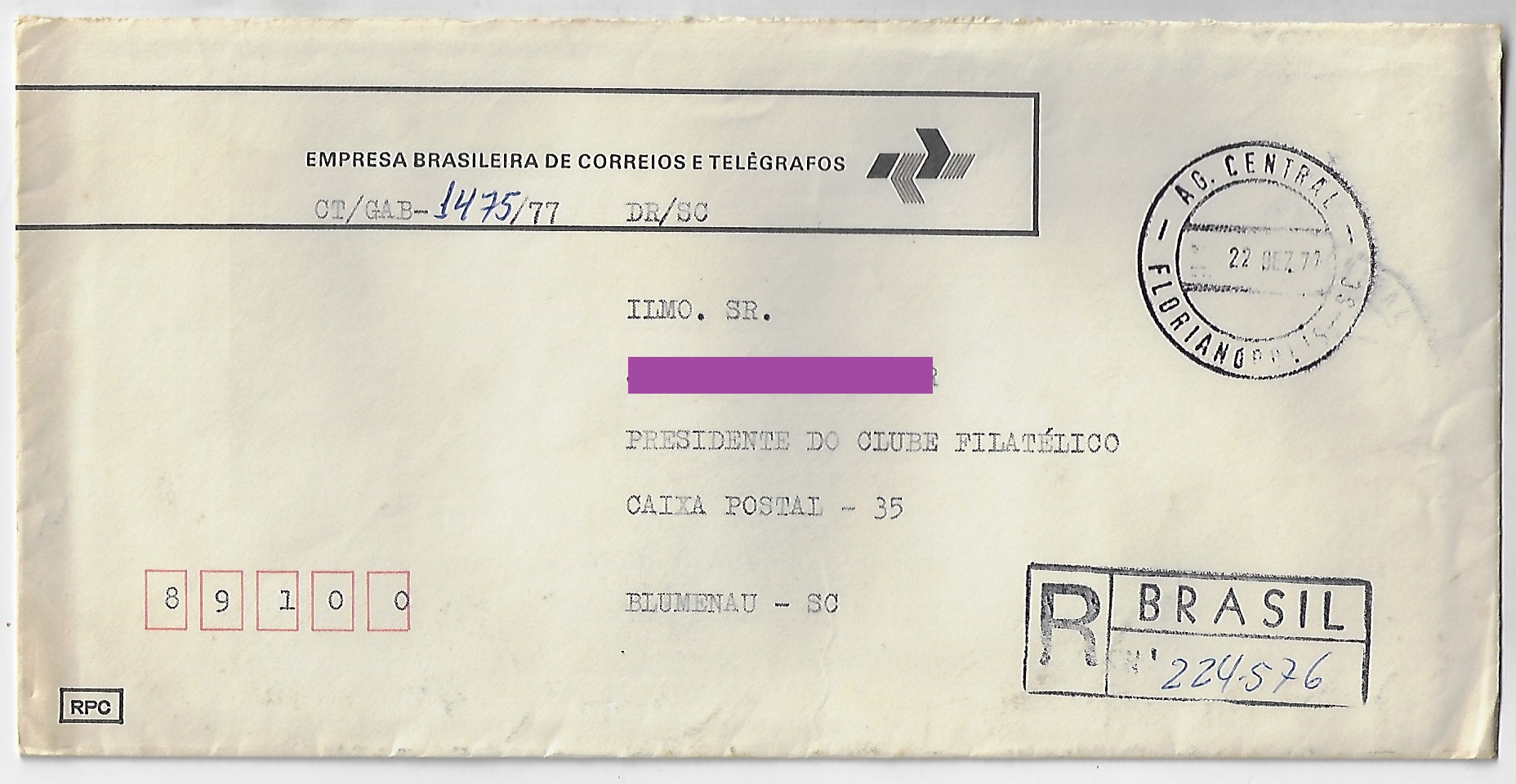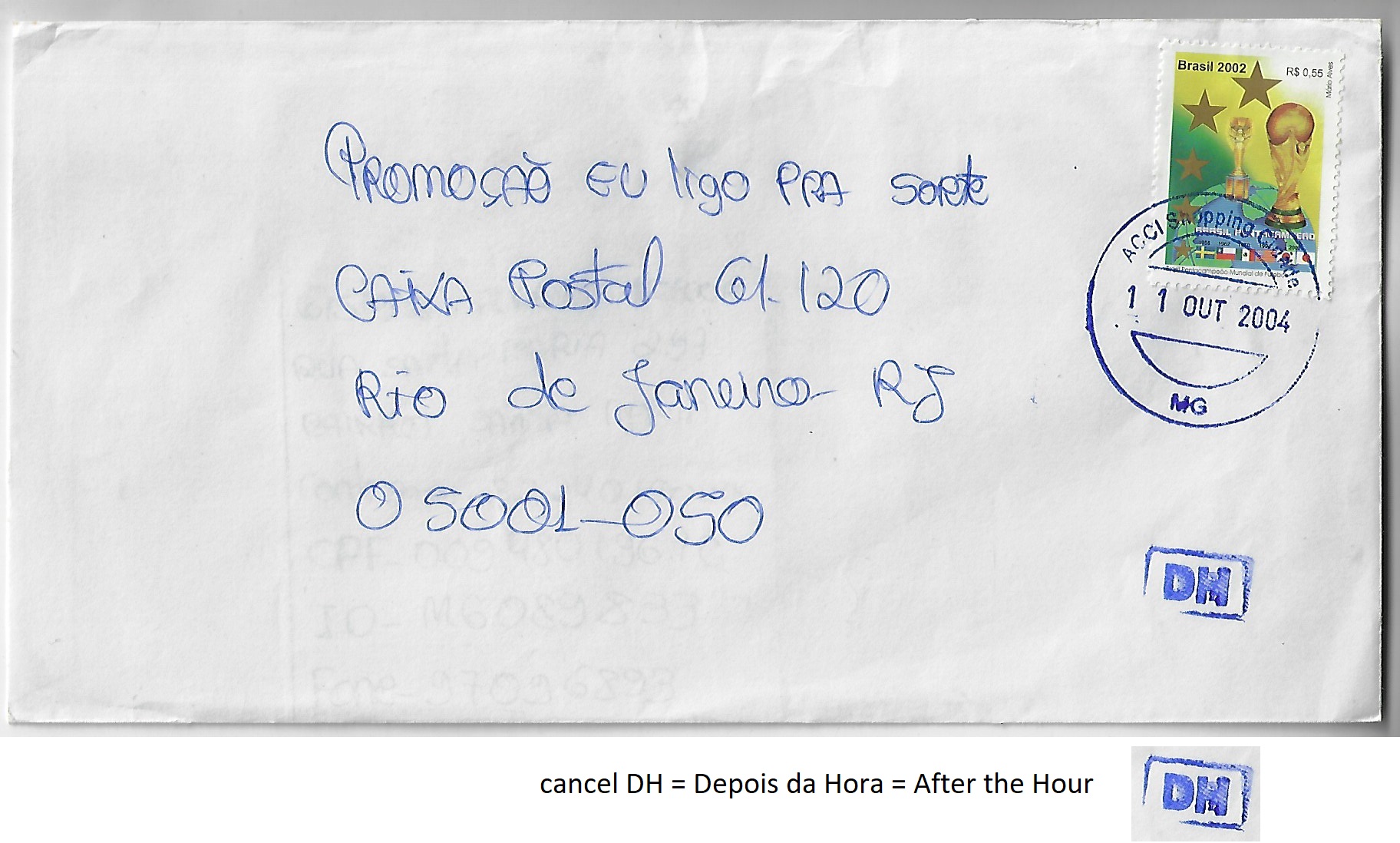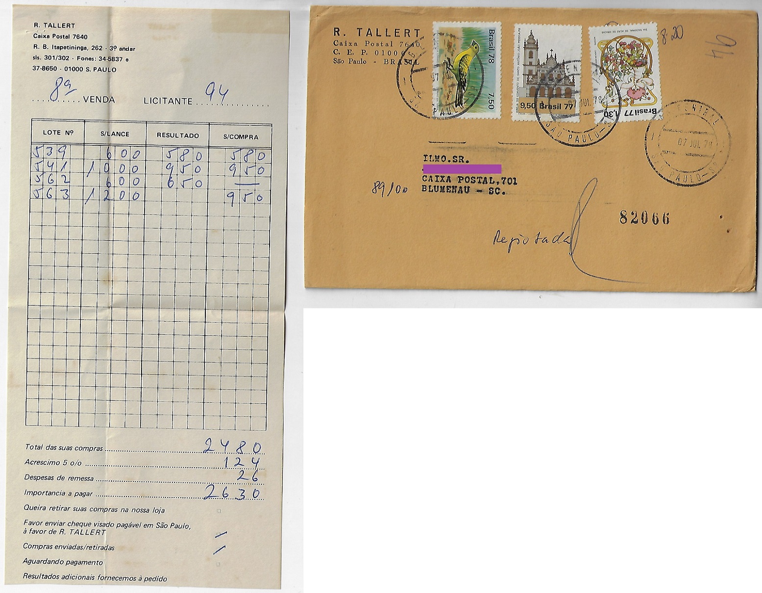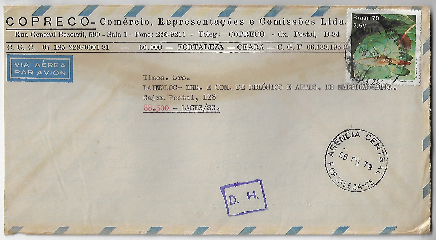 | 77738 | 2024, envelope registrado com etiqueta com código de barras enviado de Fortaleza, agência franqueada 13 de Maio, com DH = Depois da Hora | 10,00 | Foto |