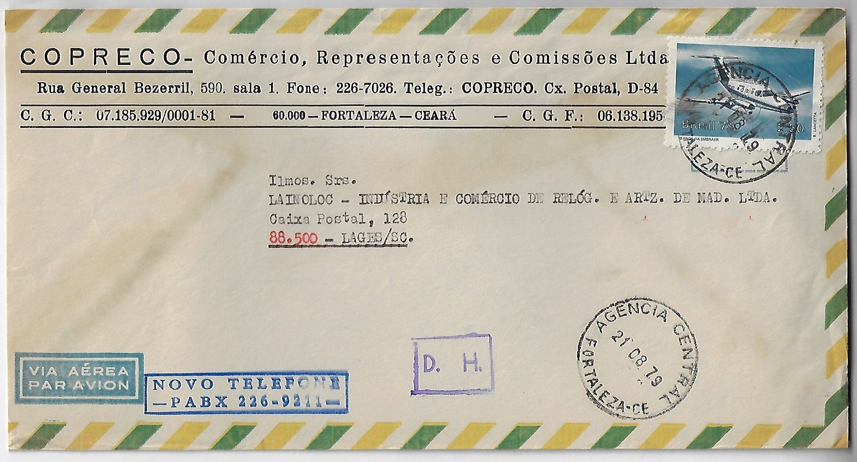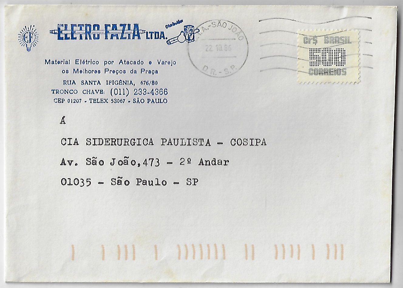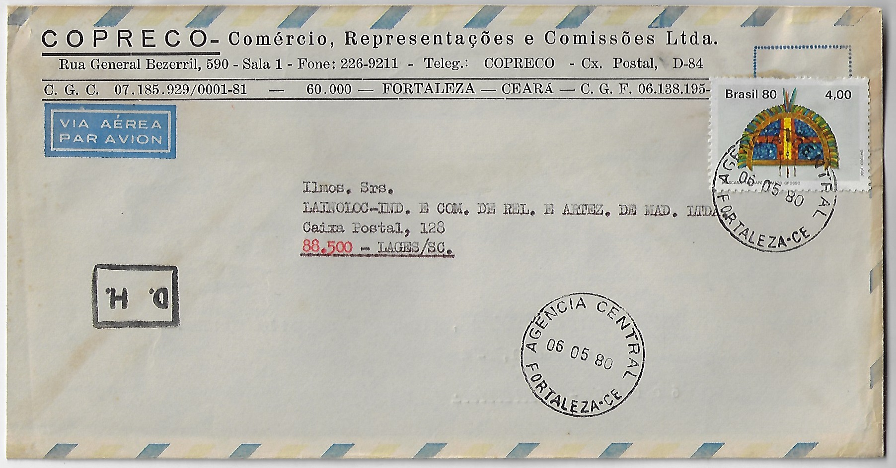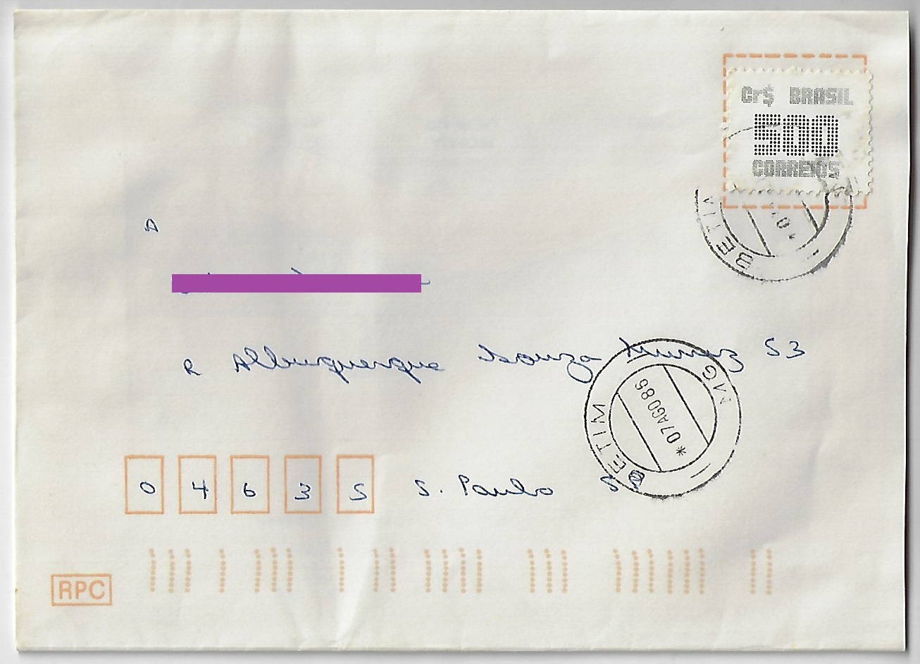 | 77738 | 2024, envelope registrado com etiqueta com código de barras enviado de Fortaleza, agência franqueada 13 de Maio, com DH = Depois da Hora | 10,00 | Foto |