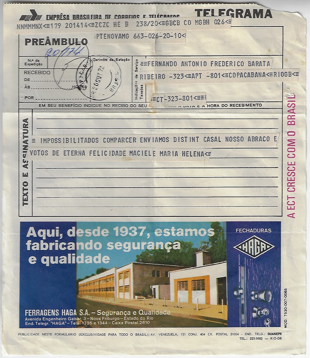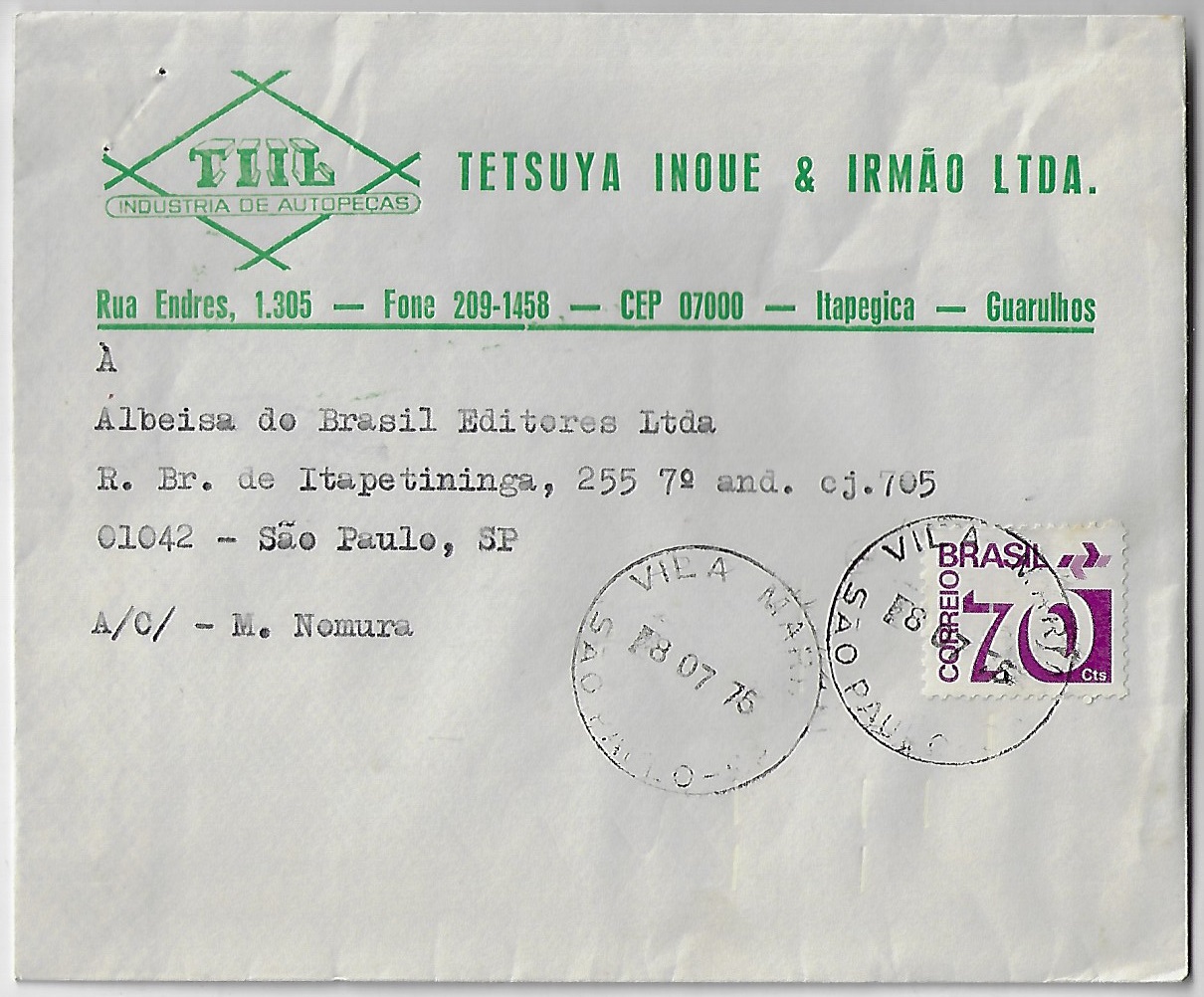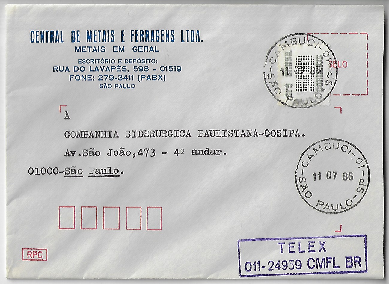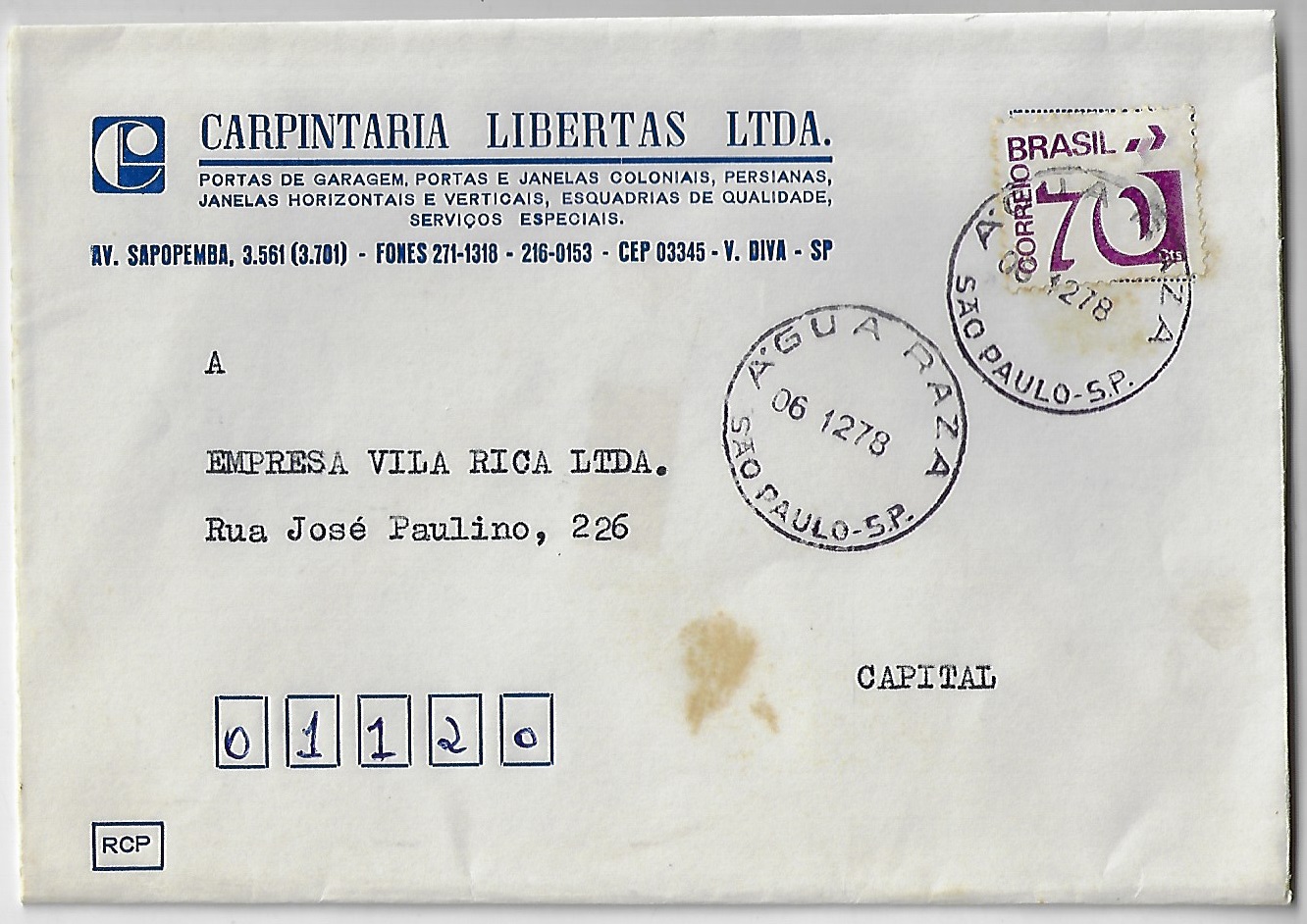 | 77738 | 2024, envelope registrado com etiqueta com código de barras enviado de Fortaleza, agência franqueada 13 de Maio, com DH = Depois da Hora | 10,00 | Foto |