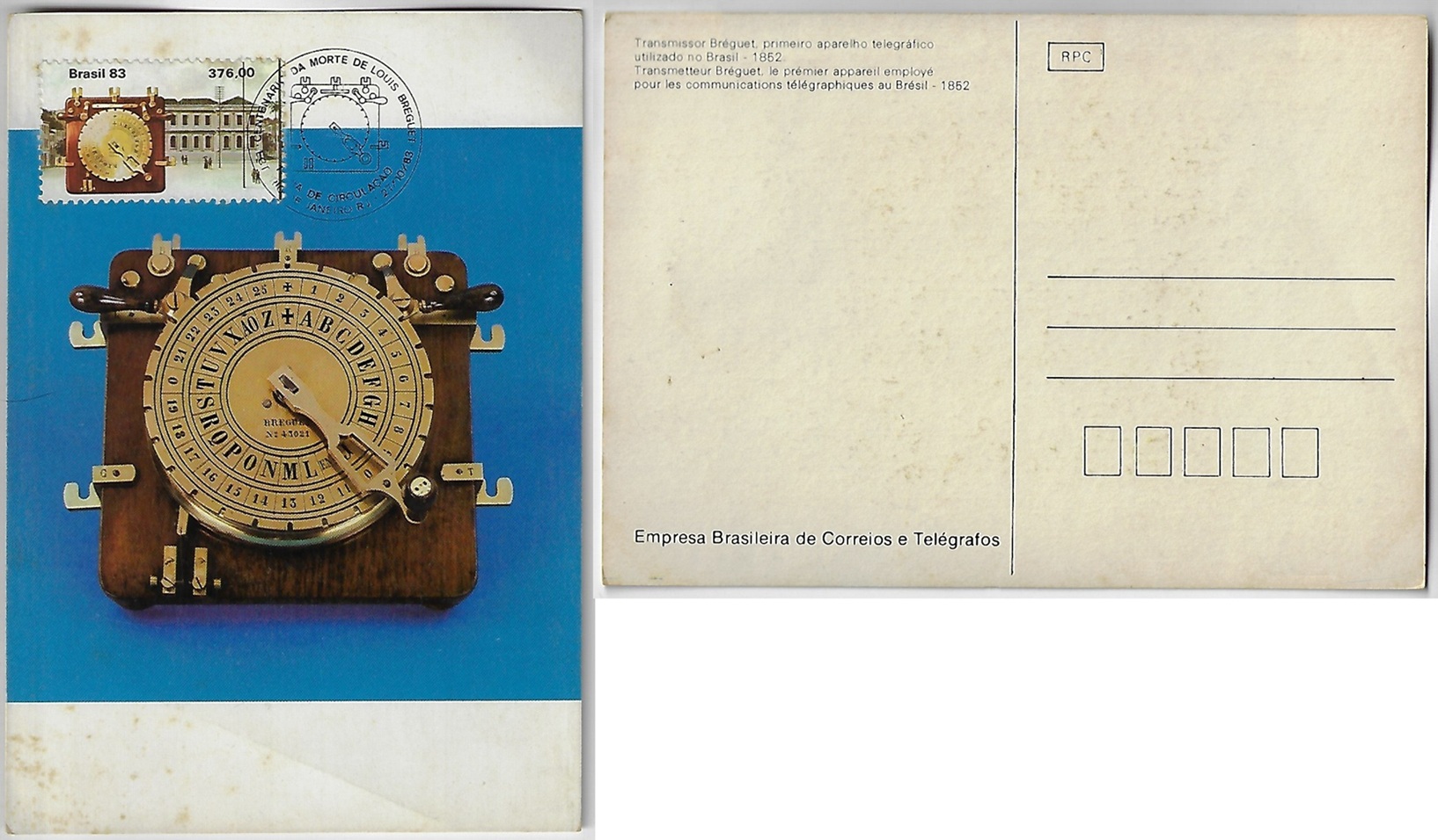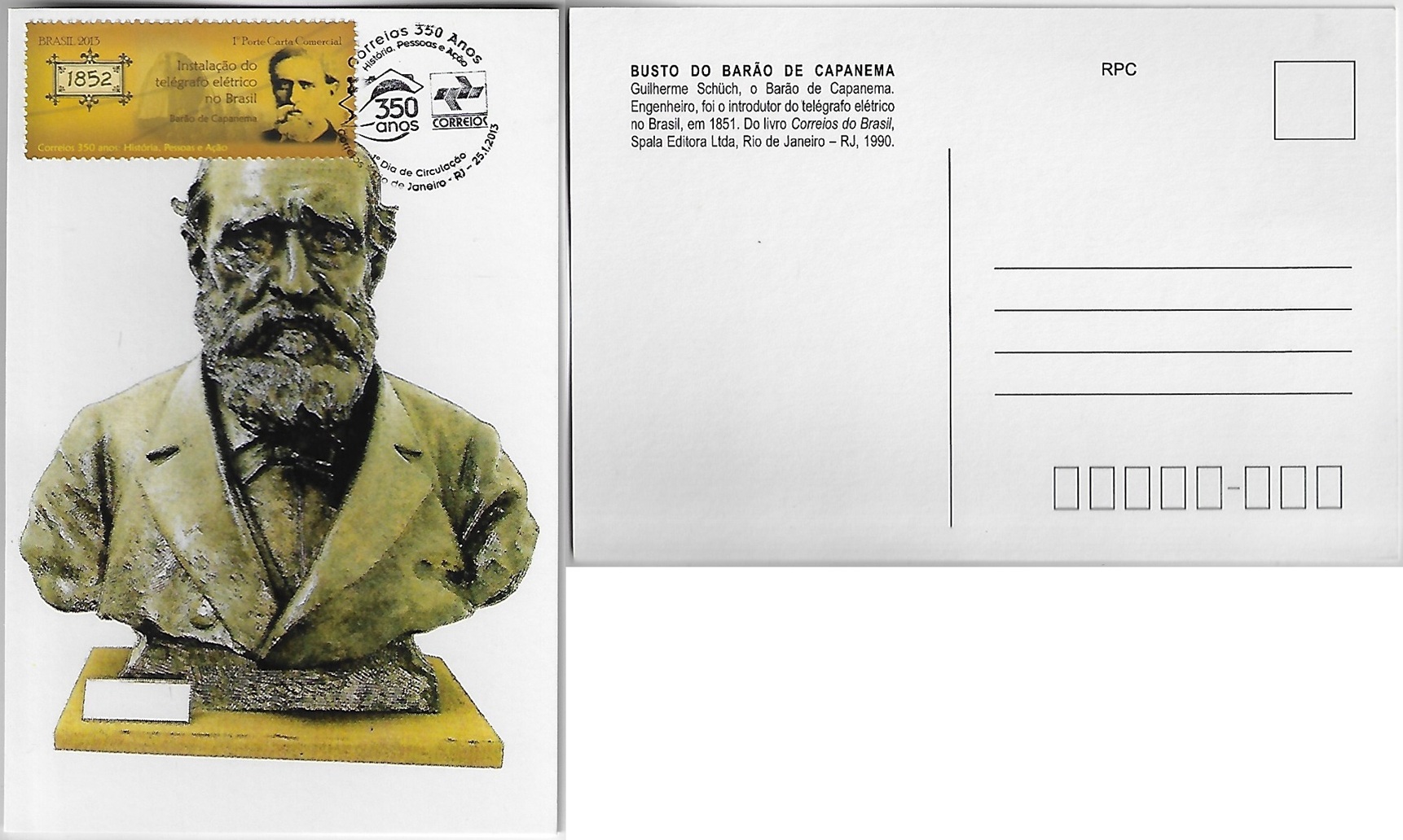 | 80226 | 2013, máximo postal da série "Correios 350 Anos: História, Pessoas e Ação", alusivo ao Barão de Capanema e Instalação do Telégrafo Elétrico no Brasil | 10,00 | Foto |