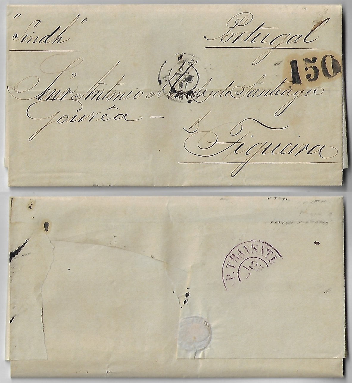 | 72757 | 1870, sobrecarta completa enviada da Bahia (10/12) para Figueira / Portugal, porte carimbado "150", carimbo "P. Transatlântico 25/12", pelo navio Sindh, da Compagnie des Messageries Maritimes | 75,00 | Foto |