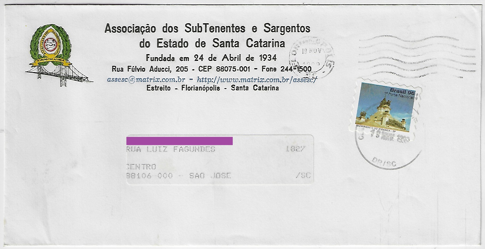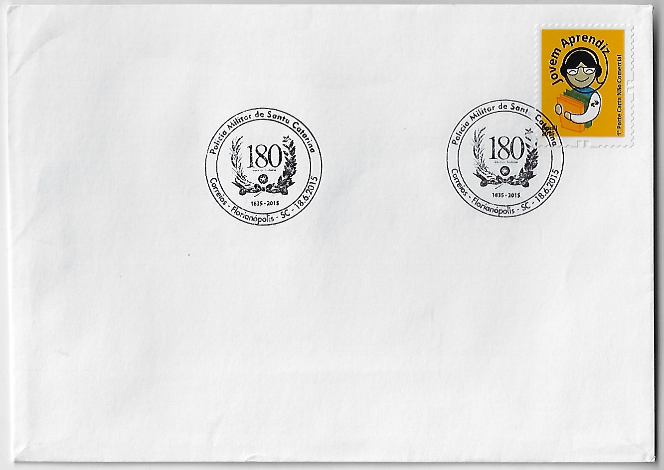 | 76300 | 2015, envelope com carimbo comemorativo aos 180 anos da Polícia Militar de Santa Catarina | 10,00 | Foto |
