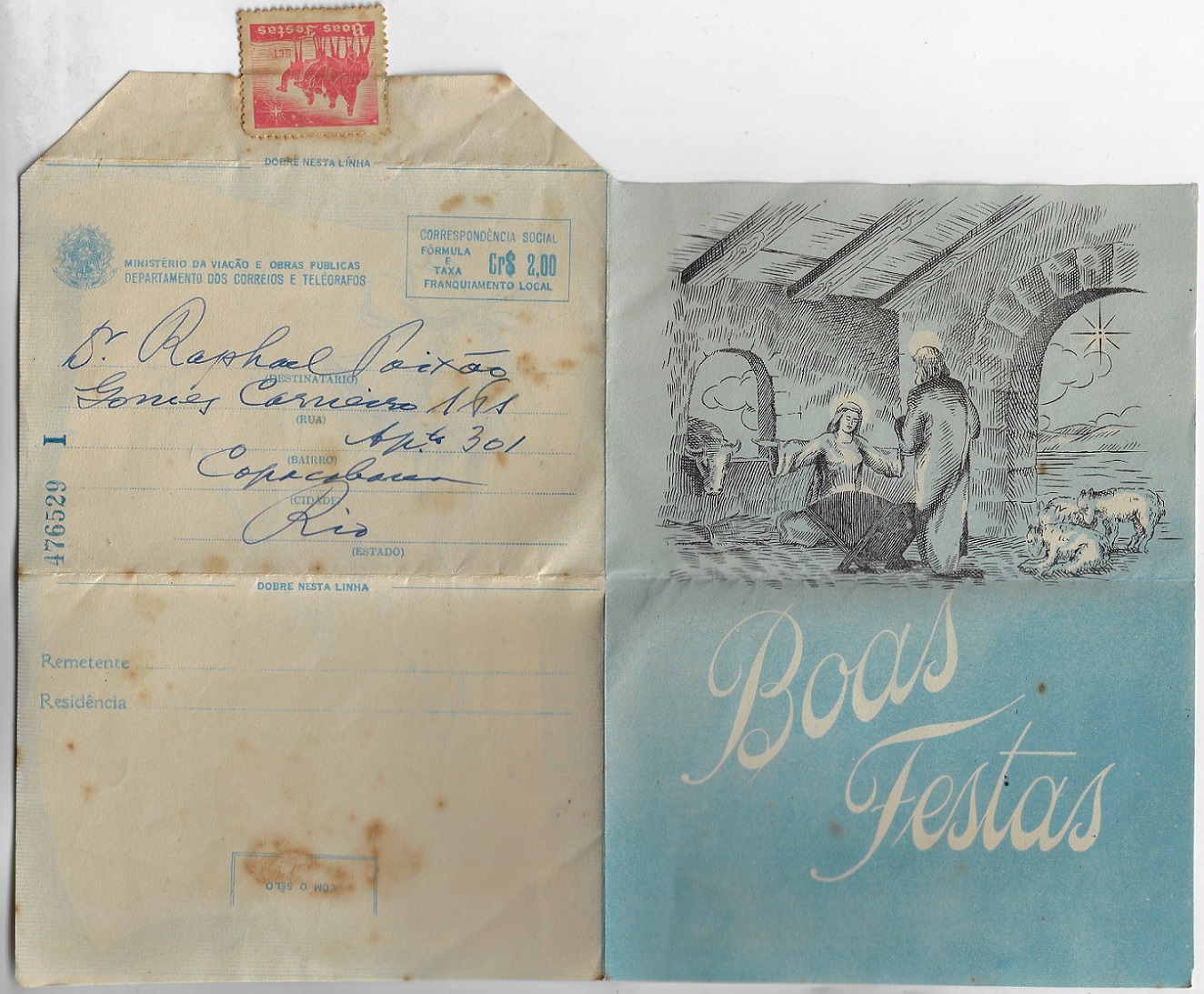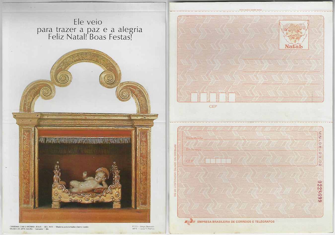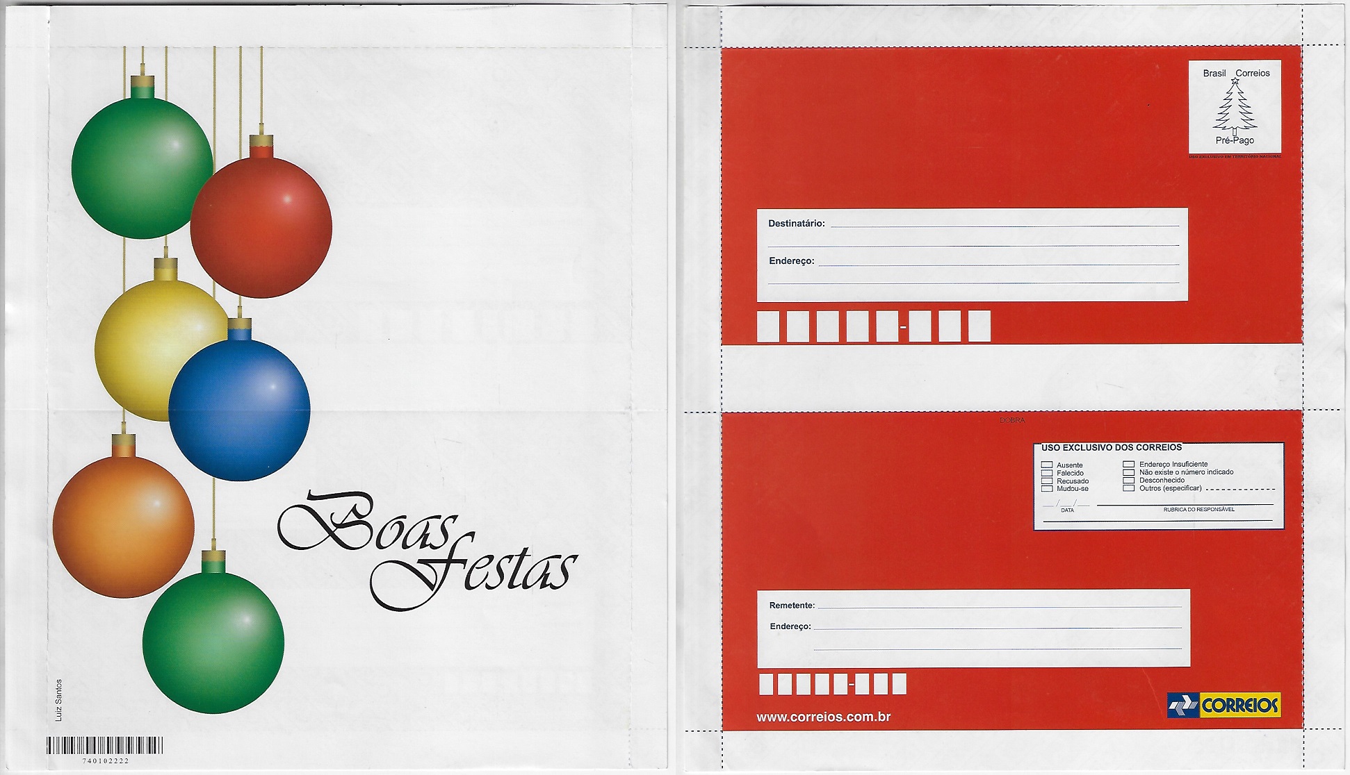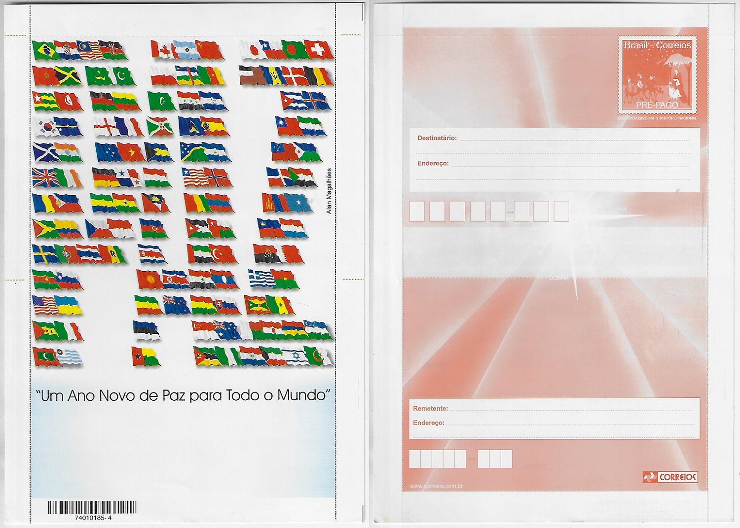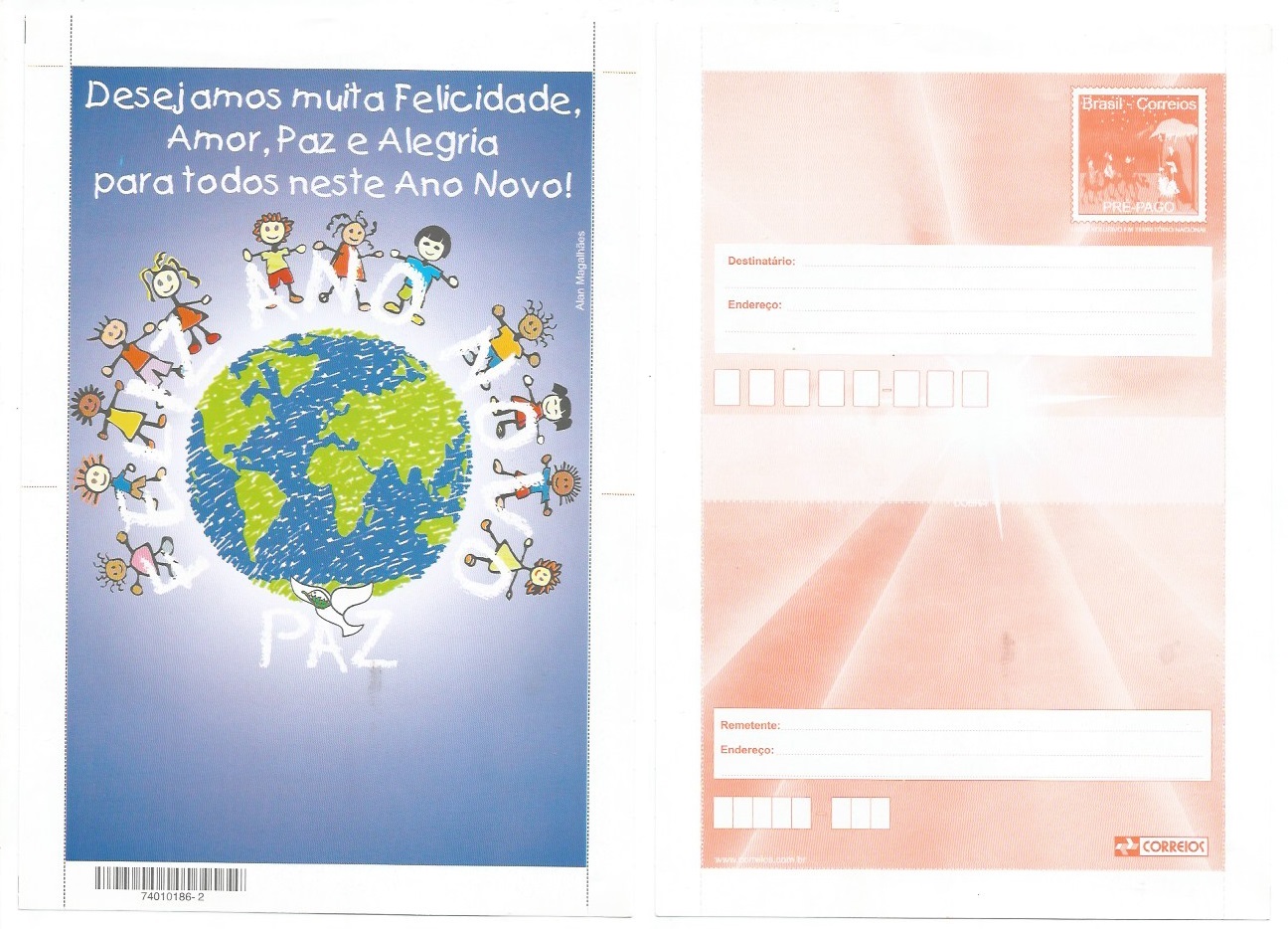 | 77589 | 2017, inteiro postal tipo Mensagem Social de Natal figurando Globo Terrestre e mensagem de Feliz Ano Novo, sem uso | 20,00 | Foto |