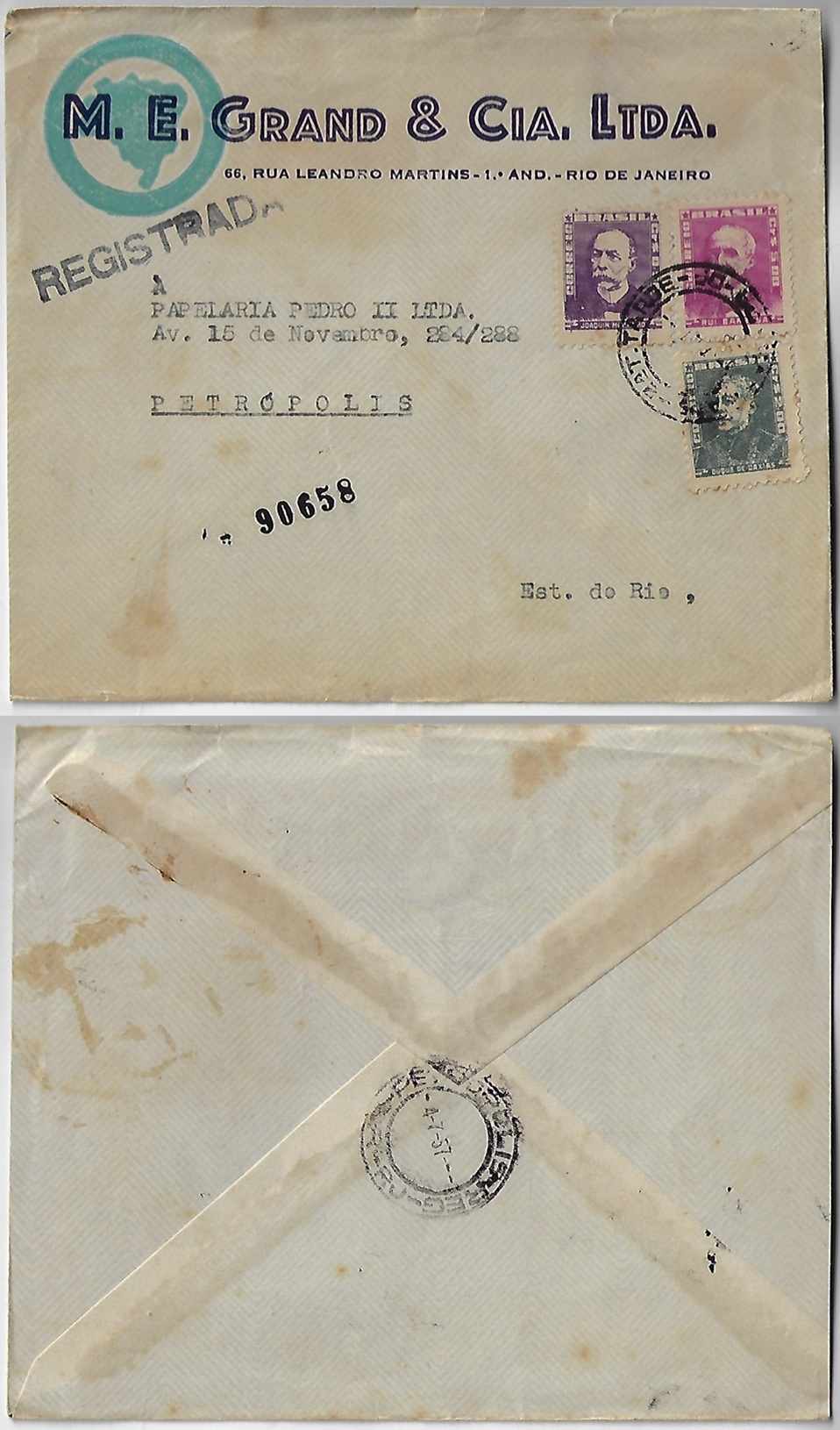 | 47240 | 1893, Inteiro Postal CB-47, do Rio de Janeiro (26/6) para Petrópolis (26/6), carimbos no verso (40 UF) | 40,00 | Foto |