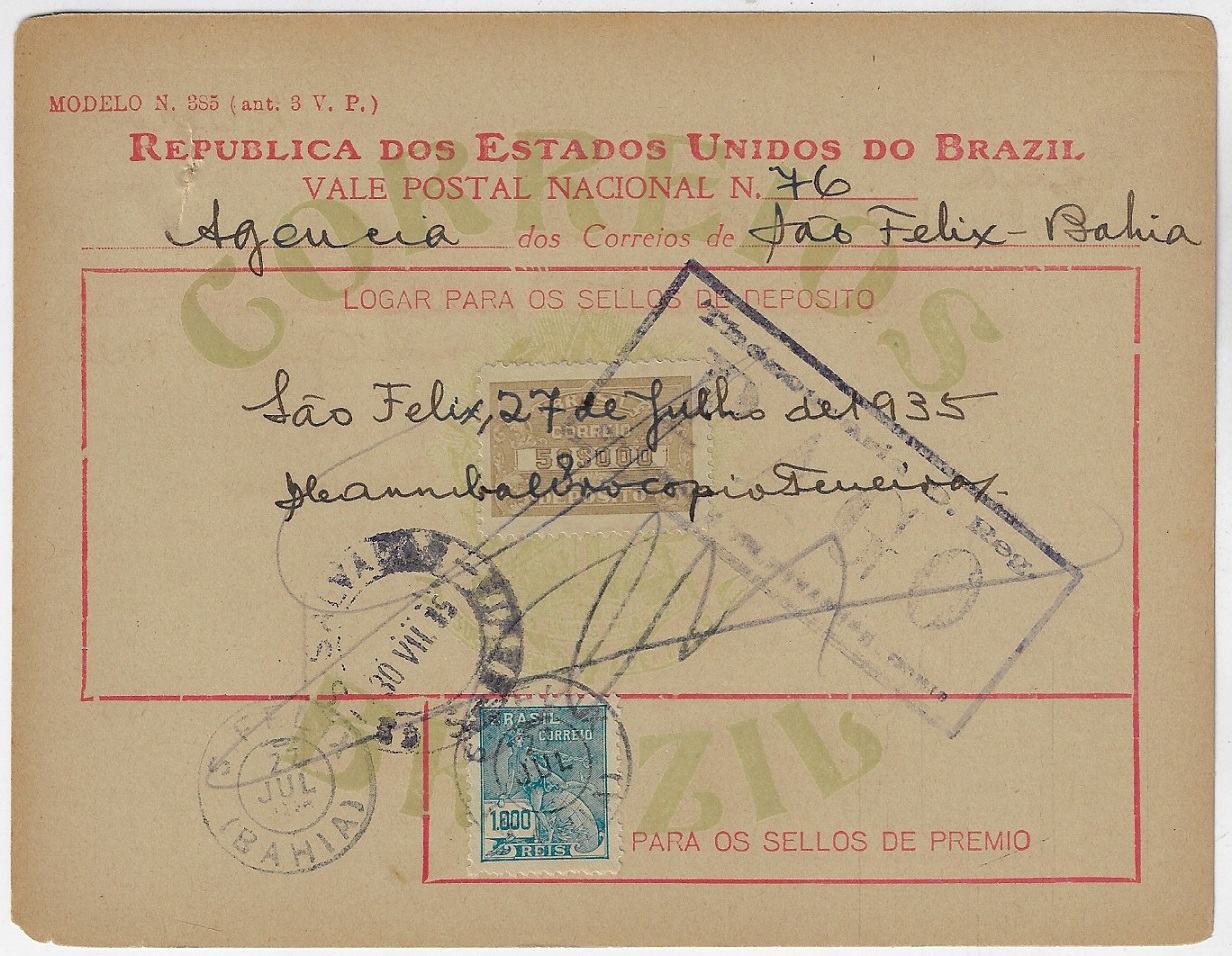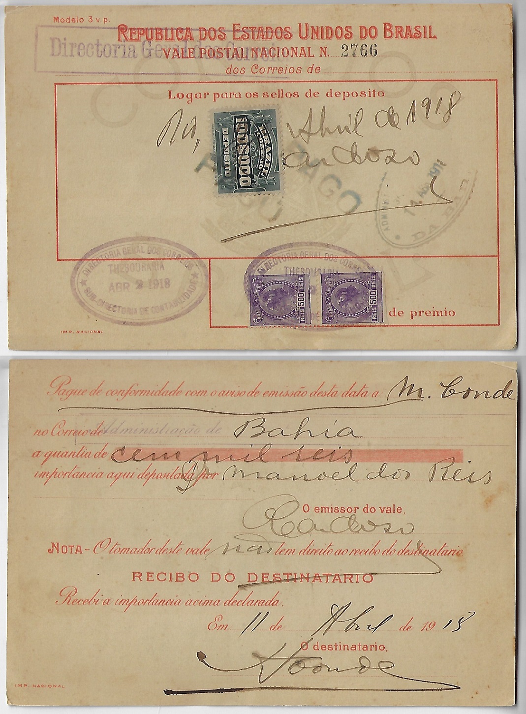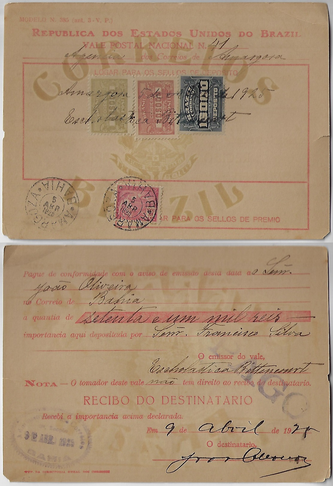 | 78421 | 1864, recibo de carta registrada com seguro de 50.000 Réis enviada de Campos (28/4) para São João da Barra (15/6) | 100,00 | Foto |