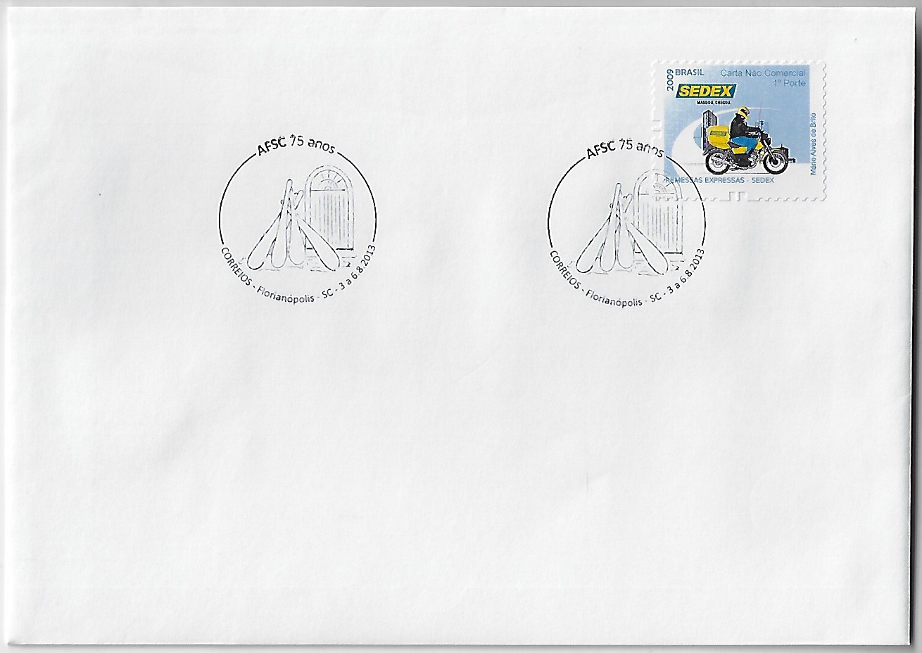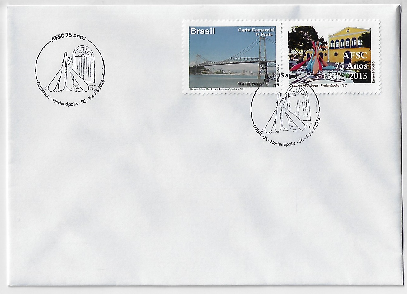 | 78743 | 2013, envelope com carimbo comemorativo aos 75 anos da AFSC, Monumento as Rendeiras, em Florianópolis | 10,00 | Foto |