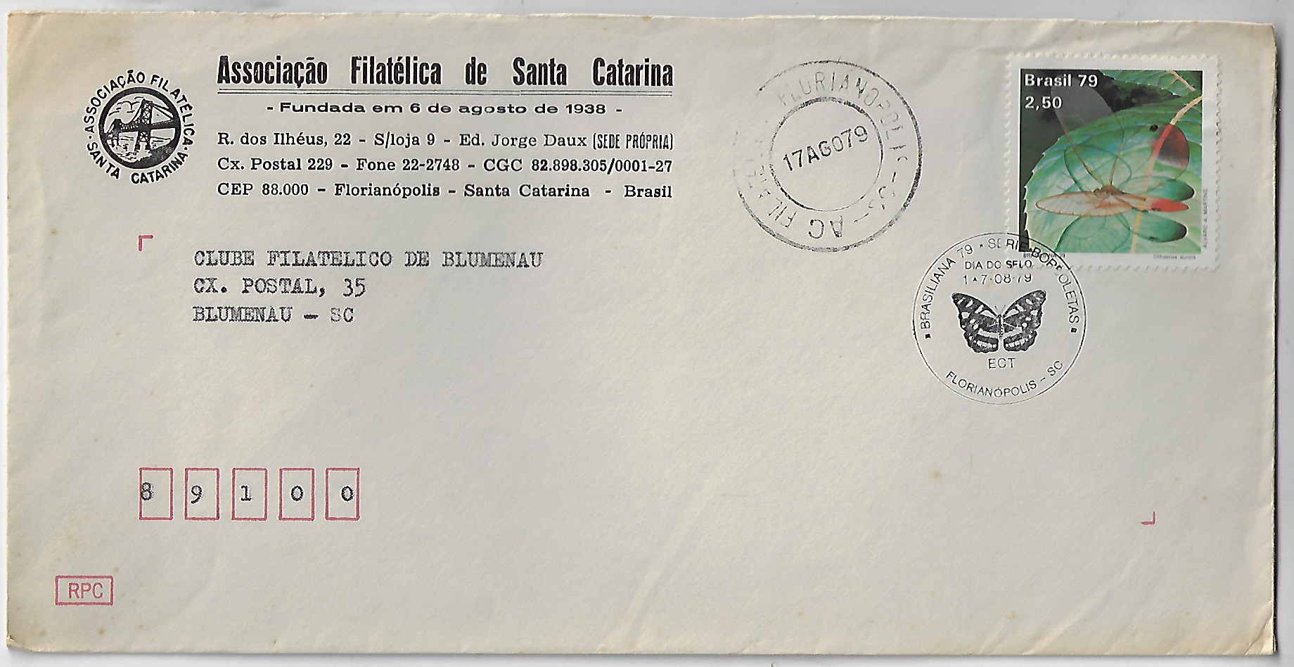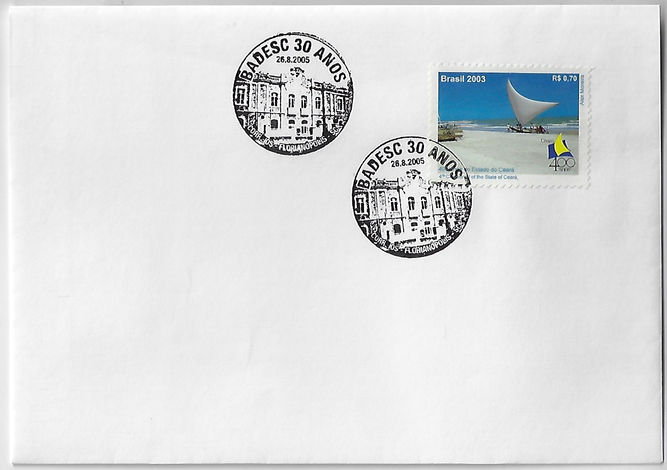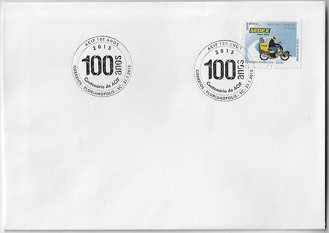 | 79227 | 2015, envelope com carimbo comemorativo aos 100 anos da Associação Comercial e Industrial de Florianópolis - ACIF | 10,00 | Foto |