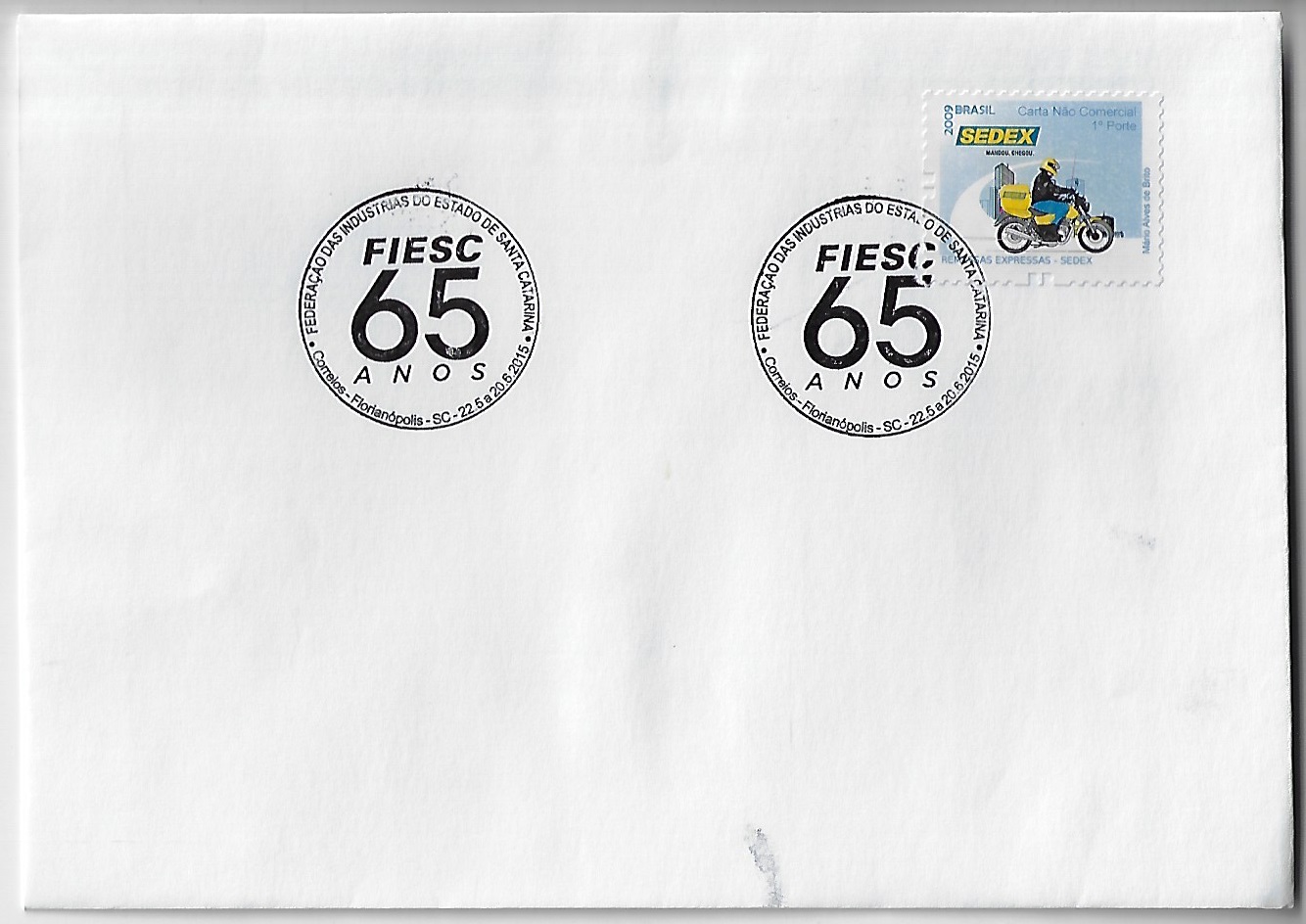 | 79232 | 2015, envelope com carimbo comemorativo aos 65 Anos da Federação das Indústrias do Estado de Santa Catarina | 10,00 | Foto |