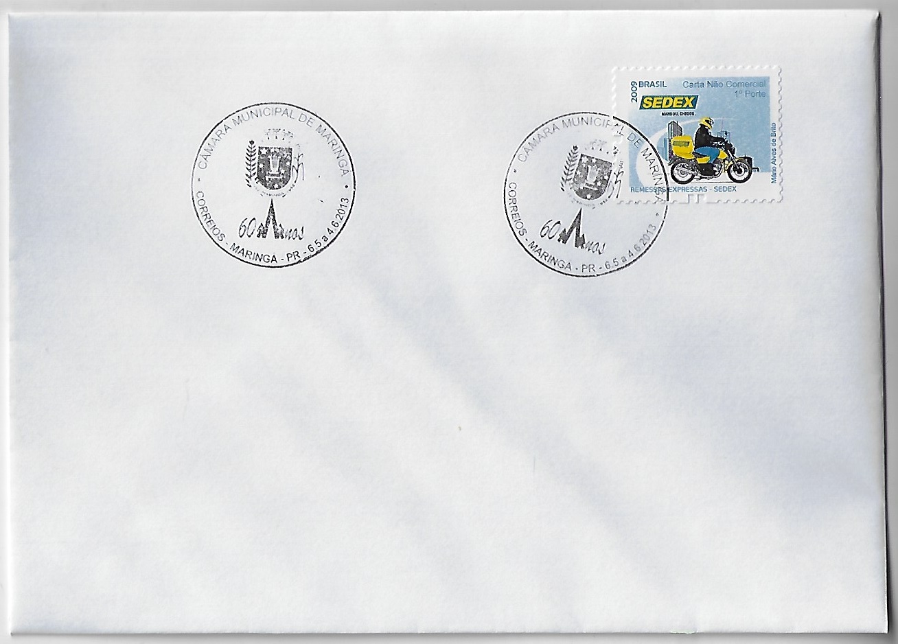 | 79276 | 2013, envelope com carimbo comemorativo aos 60 Anos da Câmara Municipal de Maringá | 10,00 | Foto |