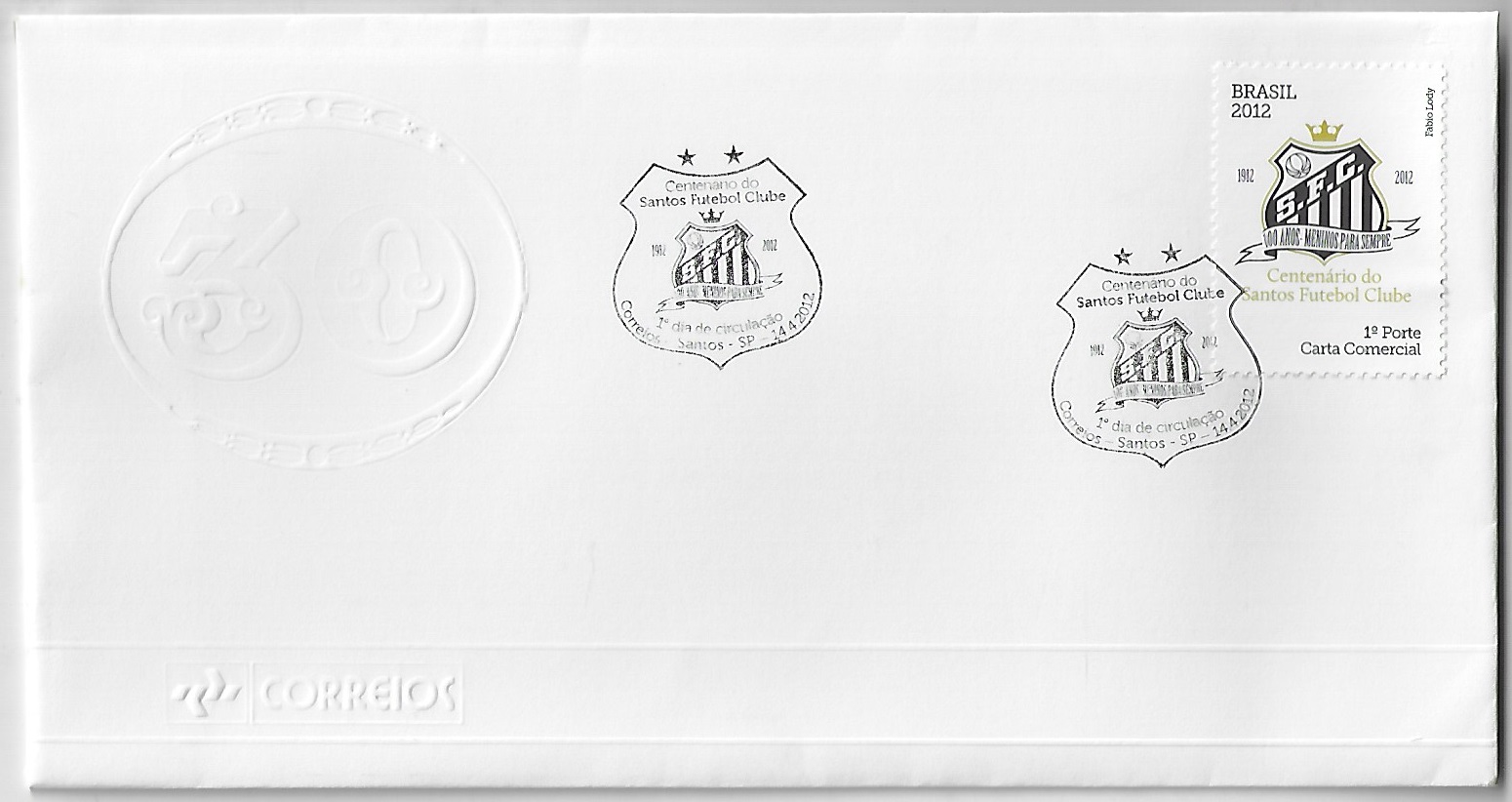| 79346 | 2012, envelope EPD-413 com selo e carimbo comemorativos aos 100 Anos do Santos Futebol Clube | 10,00 | Foto |