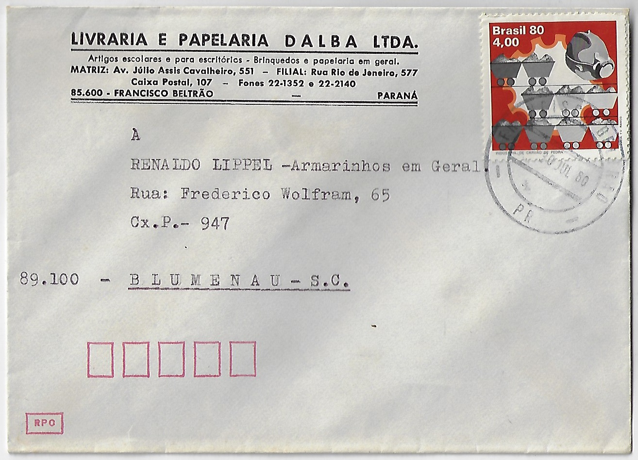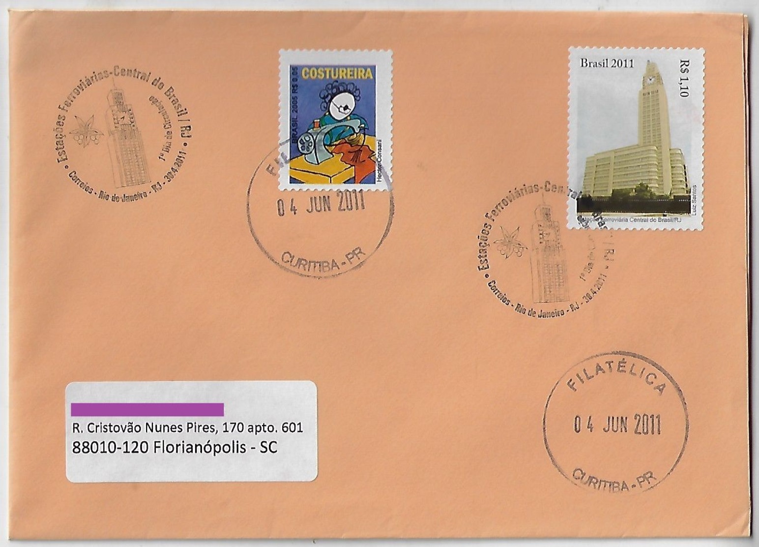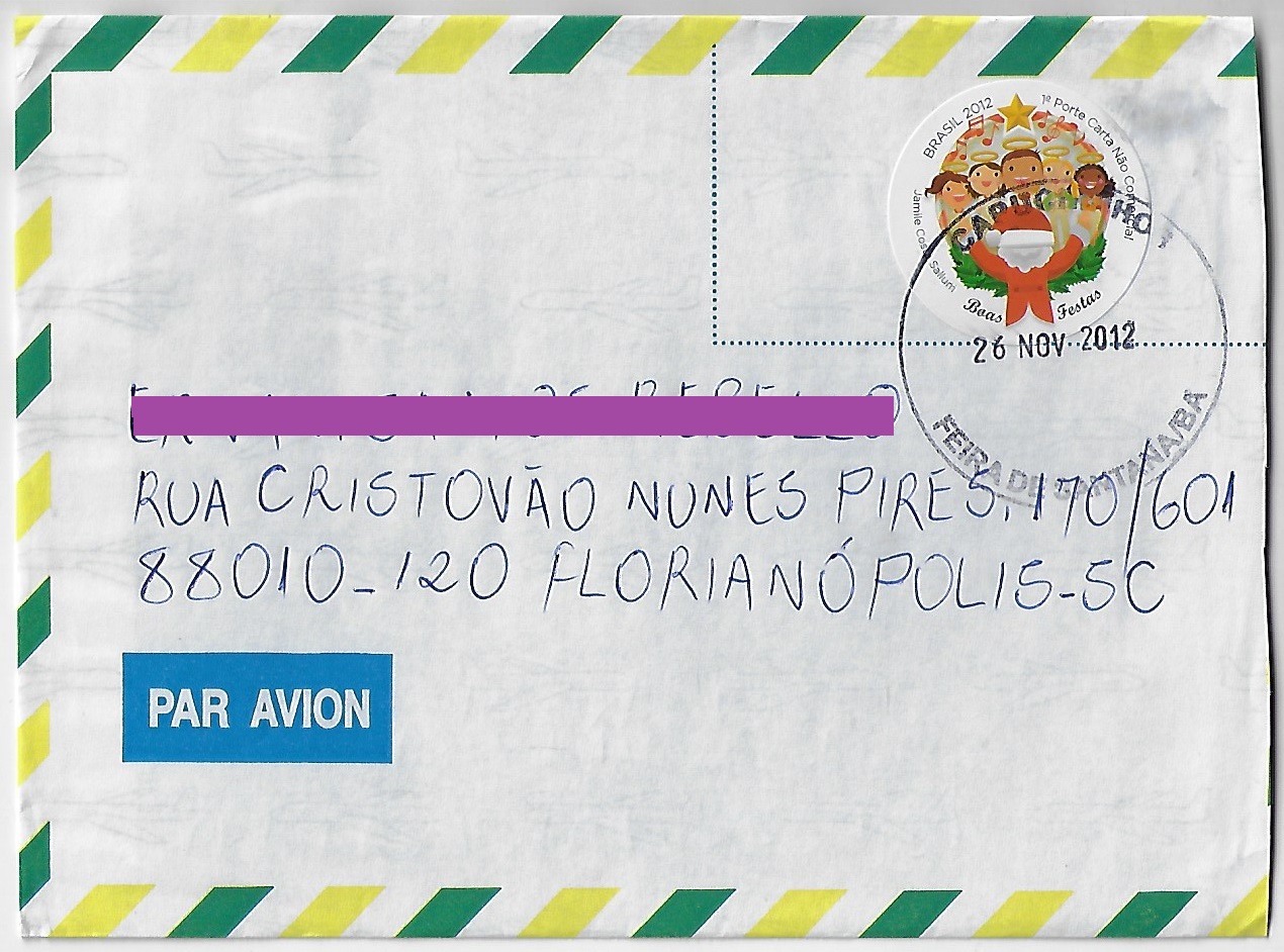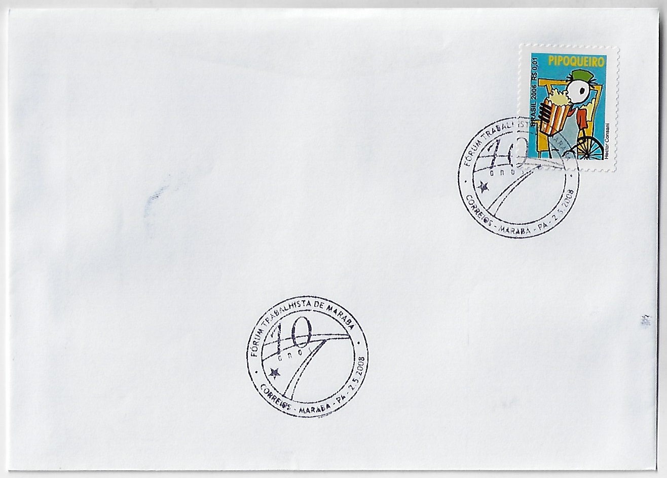 | 84456 | 2012, envelope de Vitória, agência Jardim da Penha (10/3) para Florianópolis, porteado com selo RHM-845, Profissão Carpinteiro | 10,00 | Foto |
