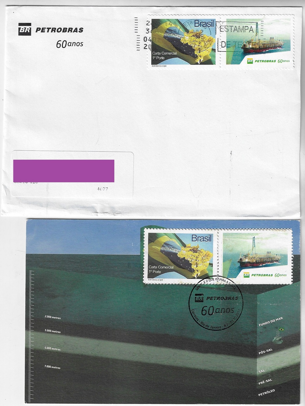 | 80497 | 2013, envelope timbrado e máximo postal com selo C-2853 personalizado aos 60 Anos da Petrobrás | 30,00 | Foto |
