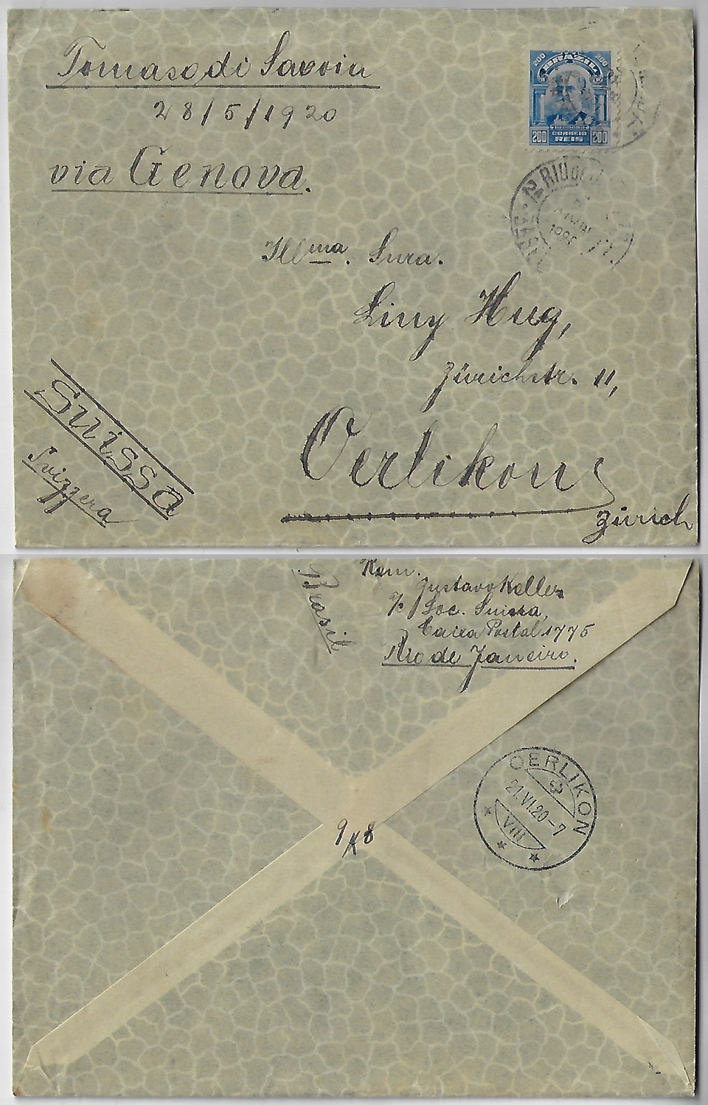 | 82053 | 1900, inteiro postal BP-60P de Salvador (17/9) para Zurique (5/10) reencaminhado para St. Gallen / Suíça (6/10), pelo vapor Liguria da Navigazione Generale Italiana | 150,00 | Foto |