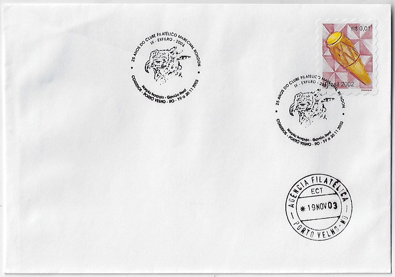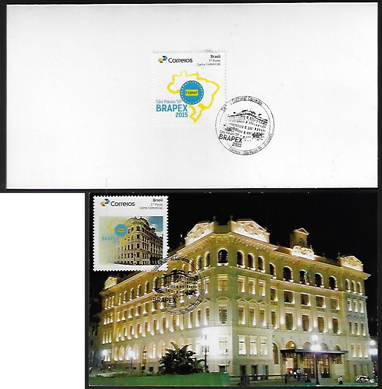 | 80921 | 2015, folder com selo personalizado básico PB-016 e máximo postal com selo personalizado PB-017, ambos alusivos a Brapex | 30,00 | Foto |