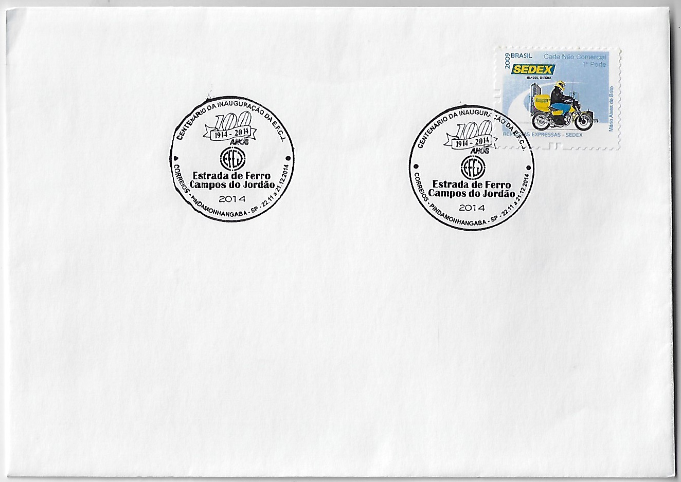 | 80954 | 2014, envelope com carimbo comemorativo aos 100 anos da Inauguração da Estrada de Ferro Campos do Jordão, de Pindamonhangaba | 10,00 | Foto |