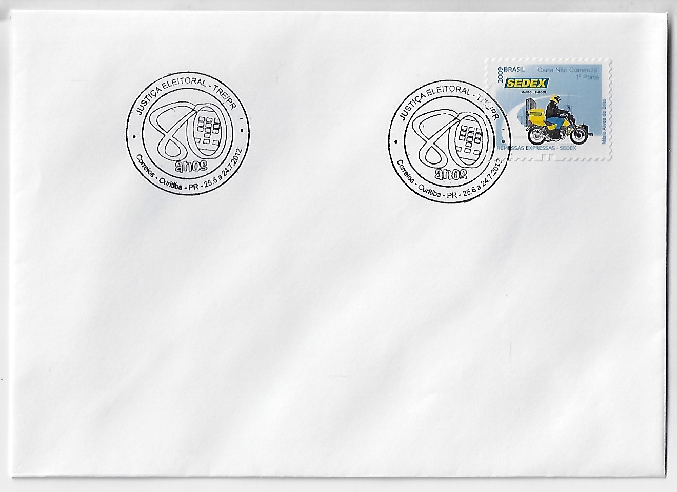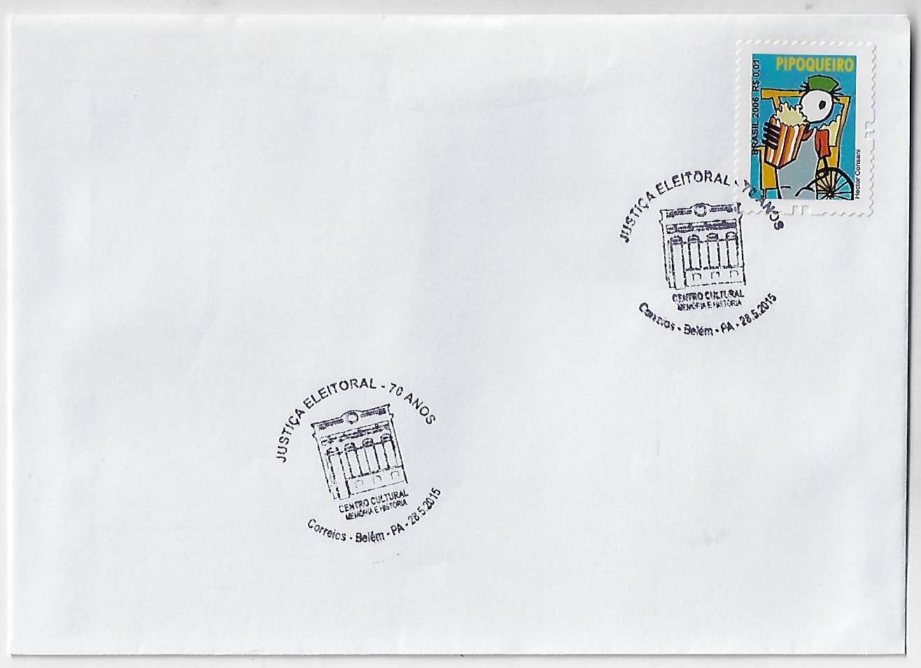 | 81083 | 2015, envelope com carimbo comemorativo alusivo aos 70 anos da Justiça Eleitoral, Centro Cultural, Memória e História, de Belém | 10,00 | Foto |