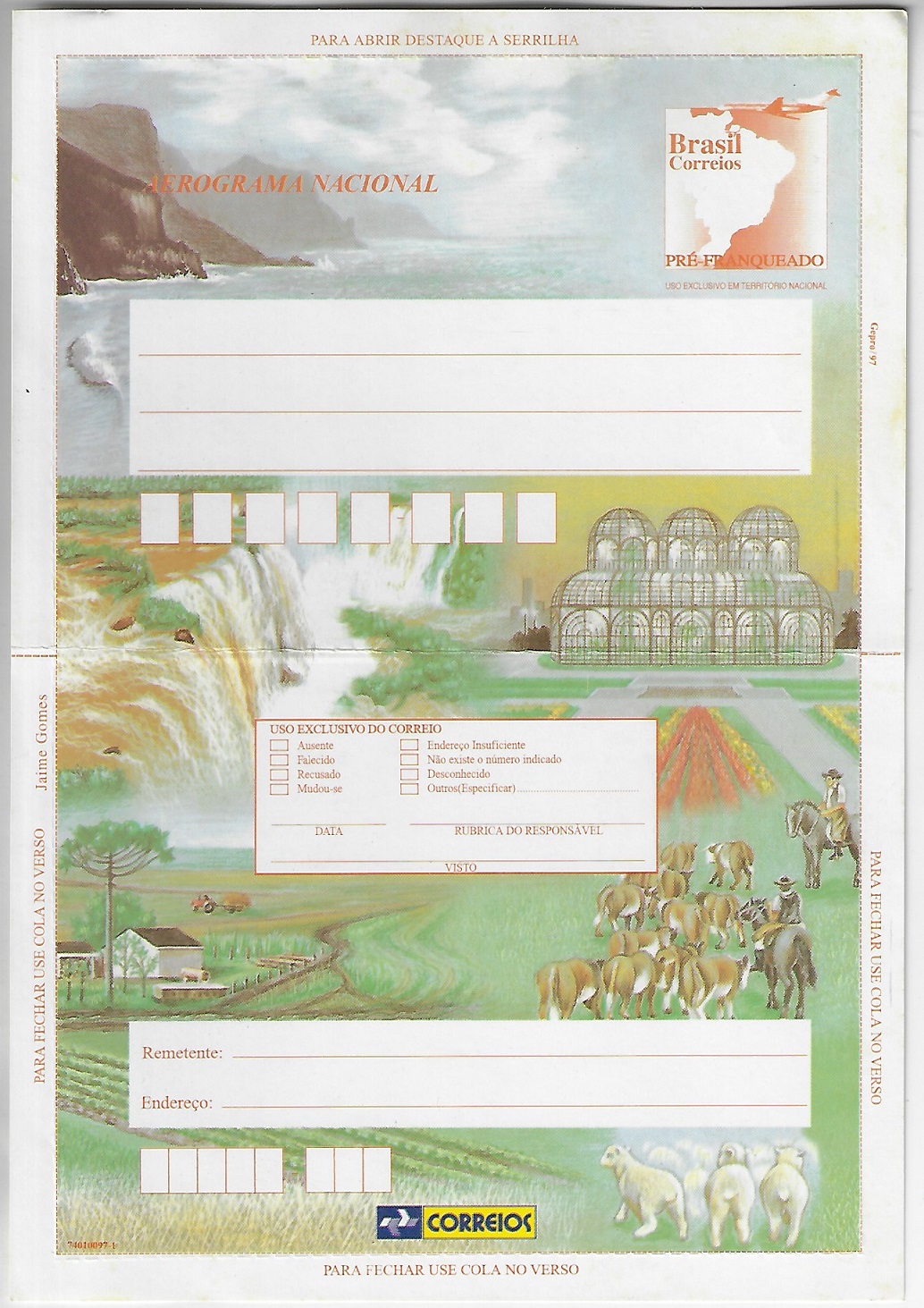 | 76159 | 2013, inteiro postal tipo aerograma alusivo aos 350 Anos dos Correios, sem uso | 20,00 | Foto |