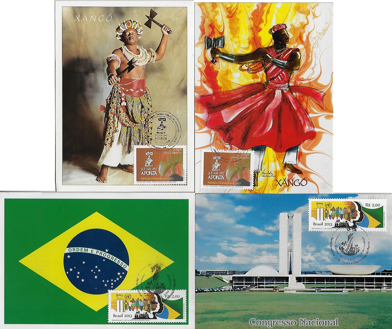 | 81441 | 2013, 4 máximos postais alusivos a Luta contra a Discriminação Racial e Religião Candomblé | 28,00 | Foto |