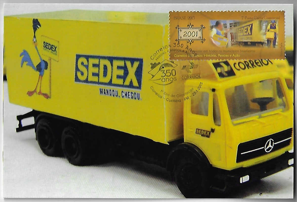 | 81497 | 2013, máximo postal da série "Correios 350 Anos: História, Pessoas e Ação", alusivo a Caminhão do SEDEX - Serviço de Encomenda Expressa Nacional | 10,00 | Foto |