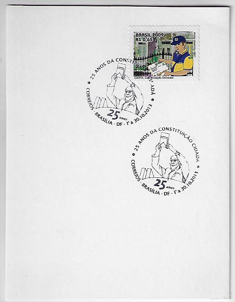 | 82414 | 2013, cartão com carimbo comemorativo alusivo aos 25 Anos da Constituição Cidadã, Deputado Federal Ulysses Guimaraes, Congresso Nacional em Brasília | 10,00 | Foto |