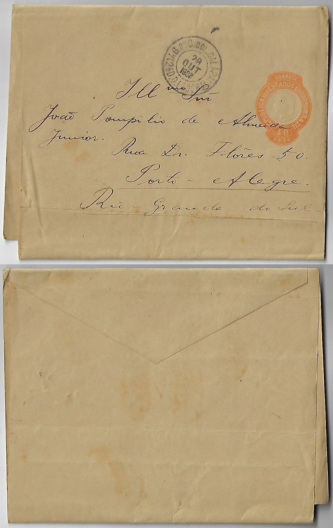 | 43039 | 1898, inteiro postal CT-15 enviado do Rio de Janeiro, agência Botafogo (17/9), para Porto Alegre | 20,00 | Foto |