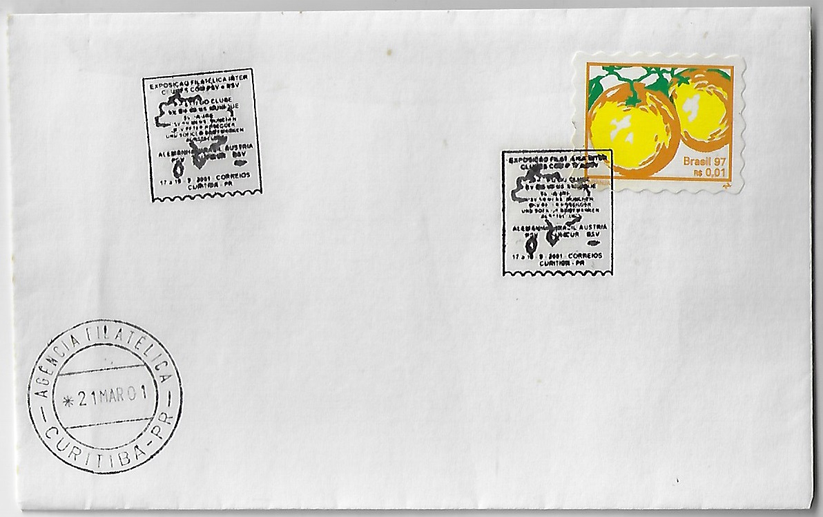 | 83869 | 2016, envelope registrado com selos PB-01 e 02 personalizados básicos alusivos a Exposição Filatélica Brasiliana, Pão de Açúcar e Cristo Redentor | 20,00 | Foto |