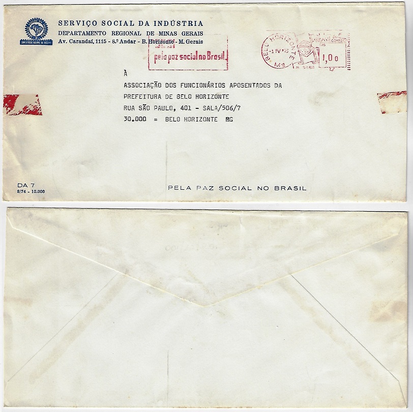 | 80028 | 2021, envelope registrado enviado de Belo Horizonte, agência Savassi (3/12) para Biguaçu, porteado com 5 selos Serviço de Logística, Empilhadeira | 10,00 | Foto |