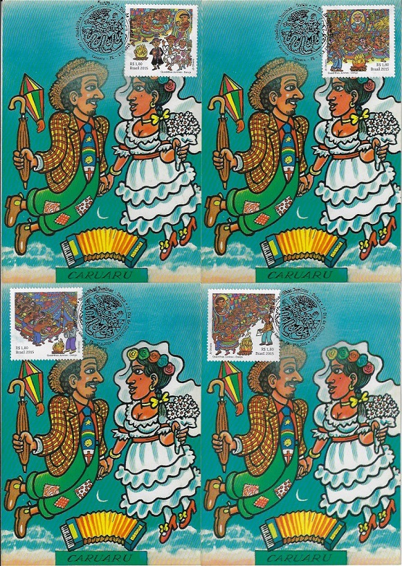 | 84711 | 2015, série completa com 4 máximos postais oficias com os selos C-3459/3462, Festa Junina, Quadrilhas | 28,00 | Foto |