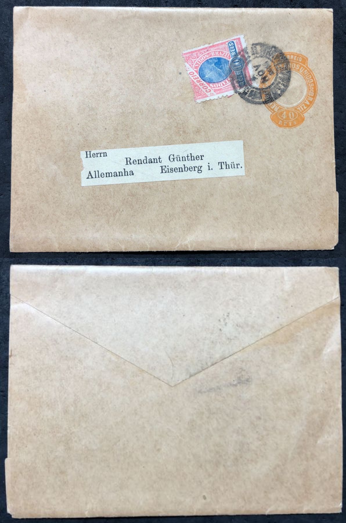 | 84880 | 1890s, inteiro postal CT-15 enviado para Eisenberg / Alemanha com selo adicional para porte internacional Madrugada 10 Réis | 22,00 | Foto |