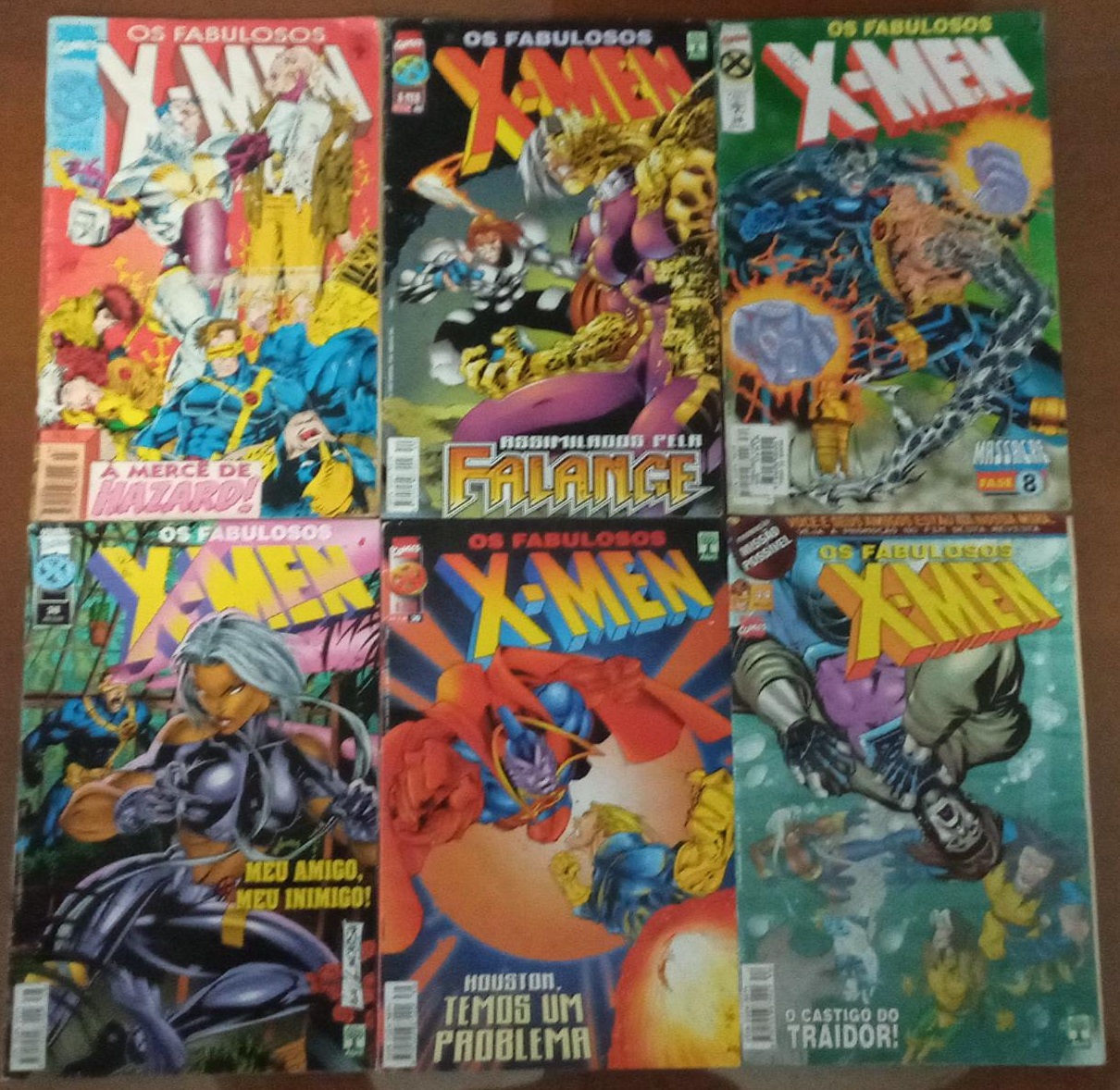 | 63693 | Brasil, 1996/1999, quadrinhos "Os fabulosos X-Men", nº 3, 34, 38, 39, 40 e 44, Editora Abril, 52 páginas cada | 30,00 | Foto |