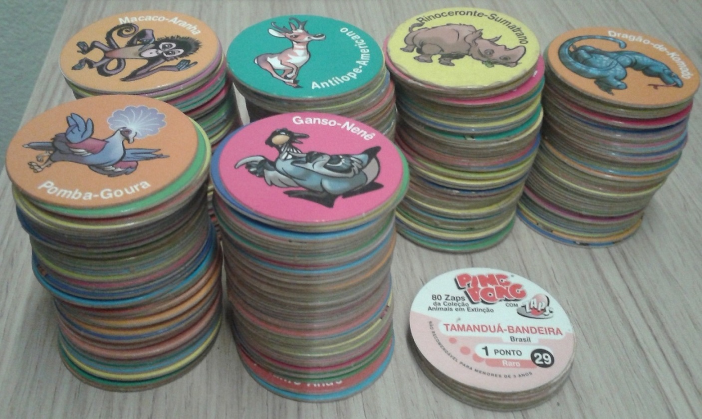 | 70595 | Brasil, 1990s, 10 tazos da coleção Ping Pong Zaps Animais em Extinção, a escolher | 15,00 | Foto |