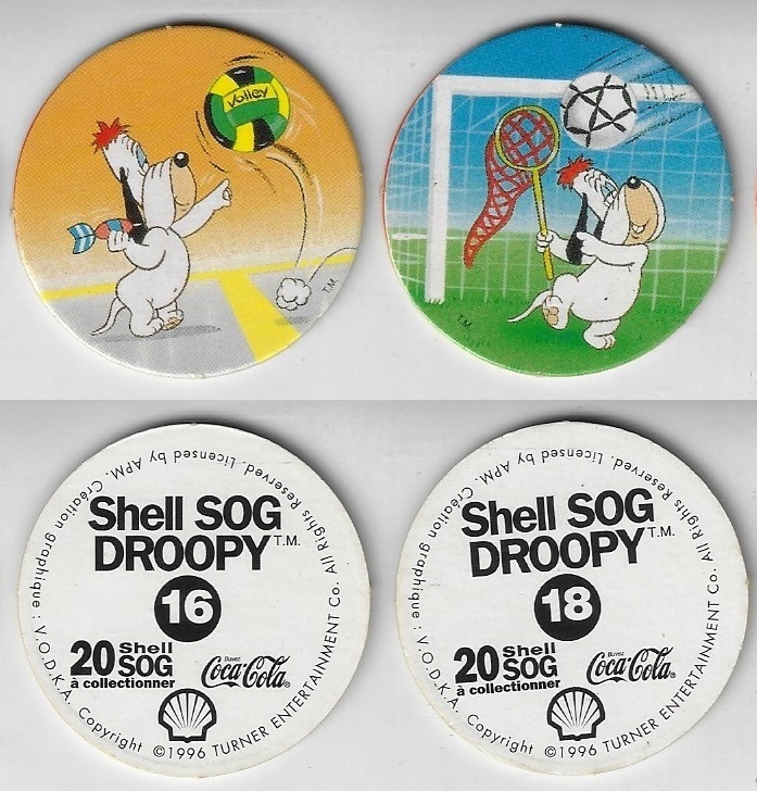 | 77098 | França, 1996, 2 tazos da coleção Shell Coca-Cola SOG Droopy, nº 16 e 18 | 4,00 | Foto |