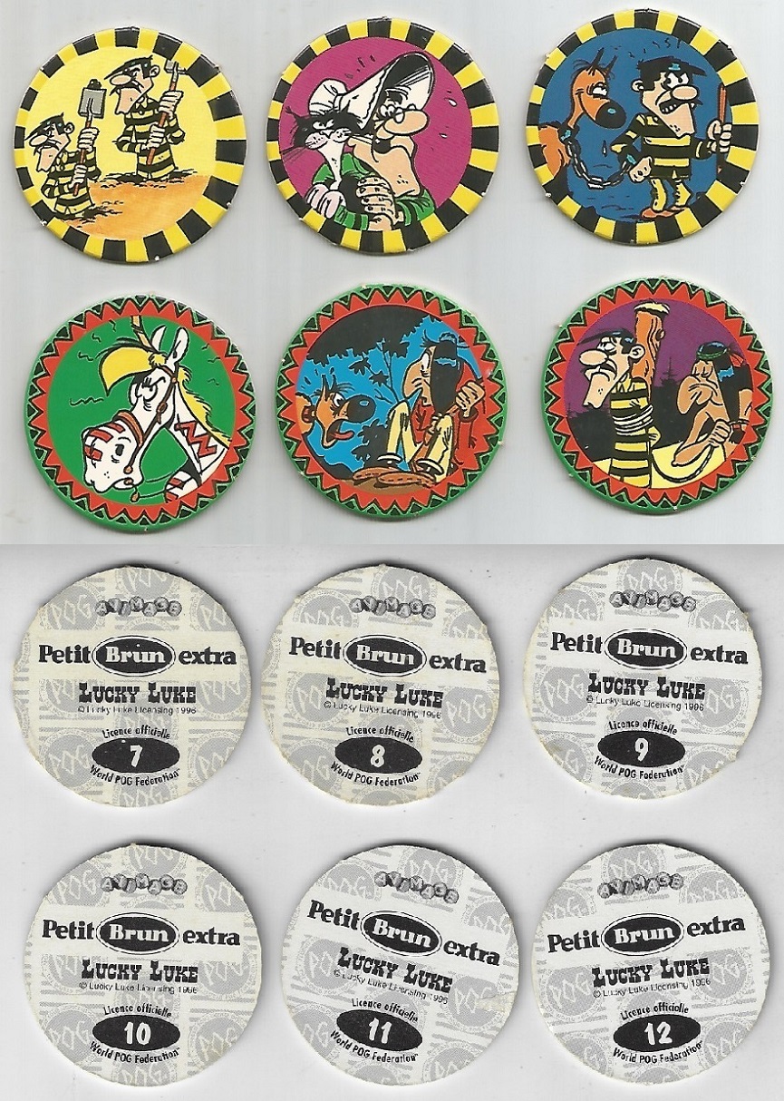 | 77100 | França, 1996, 6 tazos da coleção Avimage Lucky Luke - Petit Brun Extra, nº 7, 8, 9, 10, 11, 12 | 12,00 | Foto |